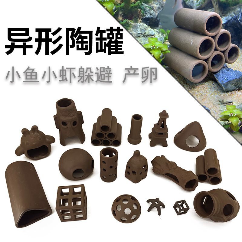 물고기 탱크 풍경 수족관 탈출 구멍 보라색 모래 세라믹 물고기와 새우 특별한 모양의 탈출 집 냄비 산란 번식 도자기 냄비 제조 업체스토어 가기