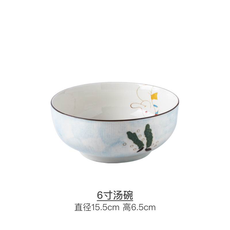 [6 인치 라면 그릇] 매점 개성 작은 국물 그릇 일본 손으로 그린 귀여운 밥그릇 창작 도자기 식기