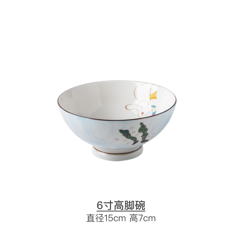 【新品】哑光陶瓷碗 奶油风卡通皓月兔米饭碗 家用餐具特色碗