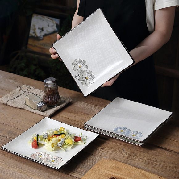 【正方盘】手绘西餐陶瓷盘 家用餐具创意菜盘 寿司家用点心平盘