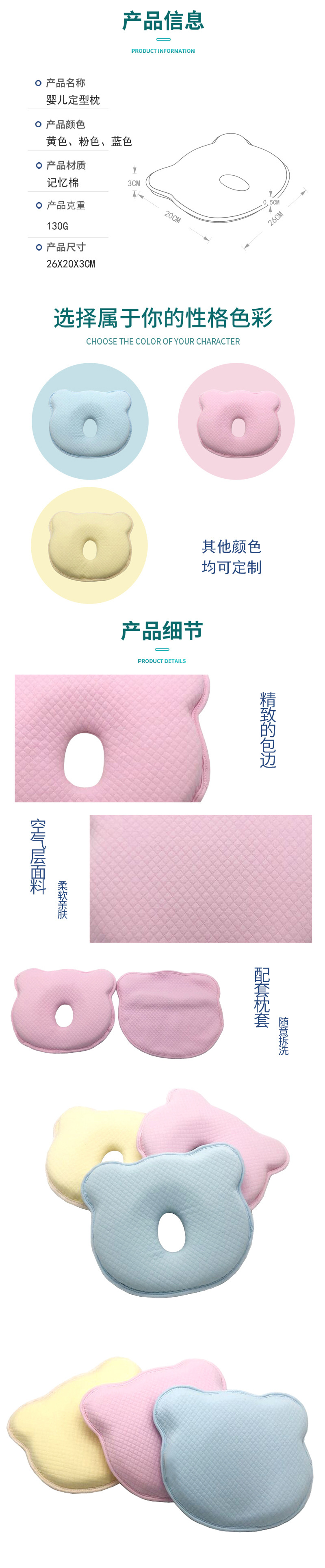 맞춤형 해외배송 아기곰 메모리폼 베개 신생아 0-3세 유치원 어린이 순면