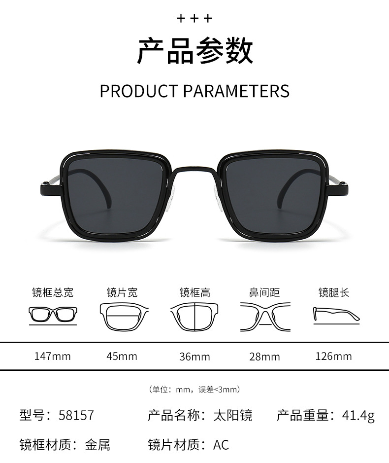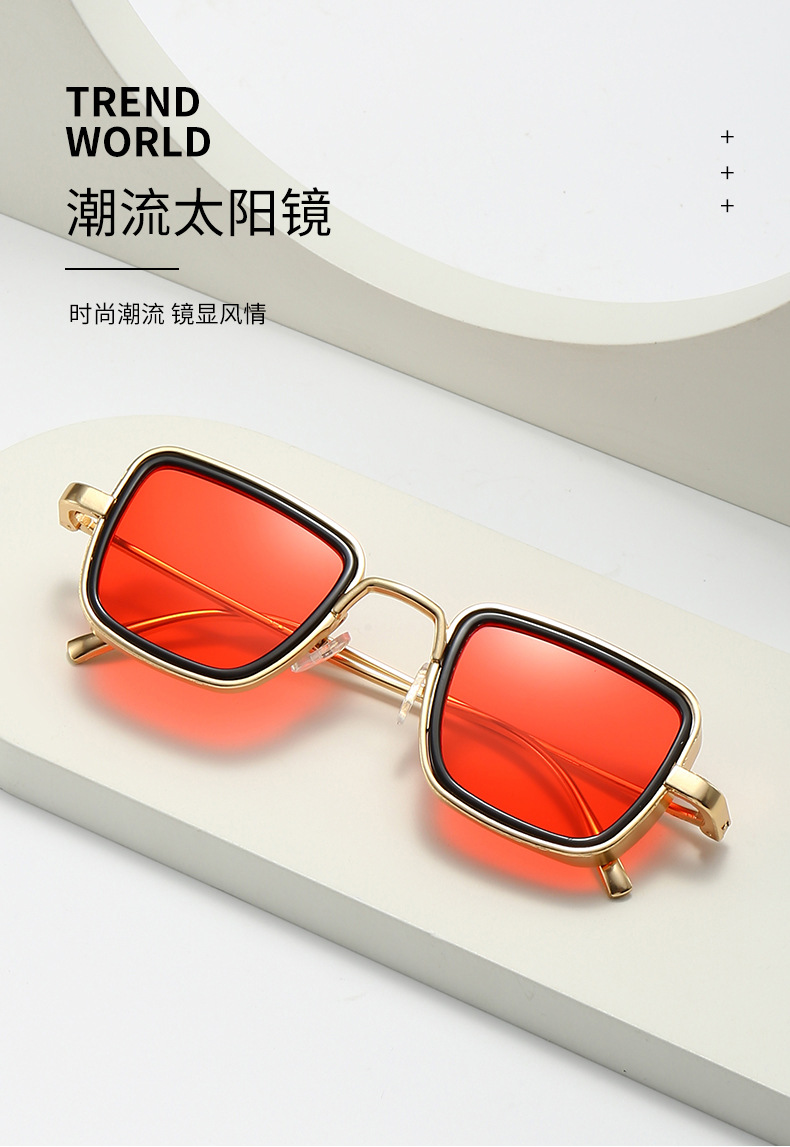 새로운 국경 인도 스타일 선글라스 58157 남자 복고풍 두꺼운 가장자리 패션 금속 사각형 프레임 유행 선글라스