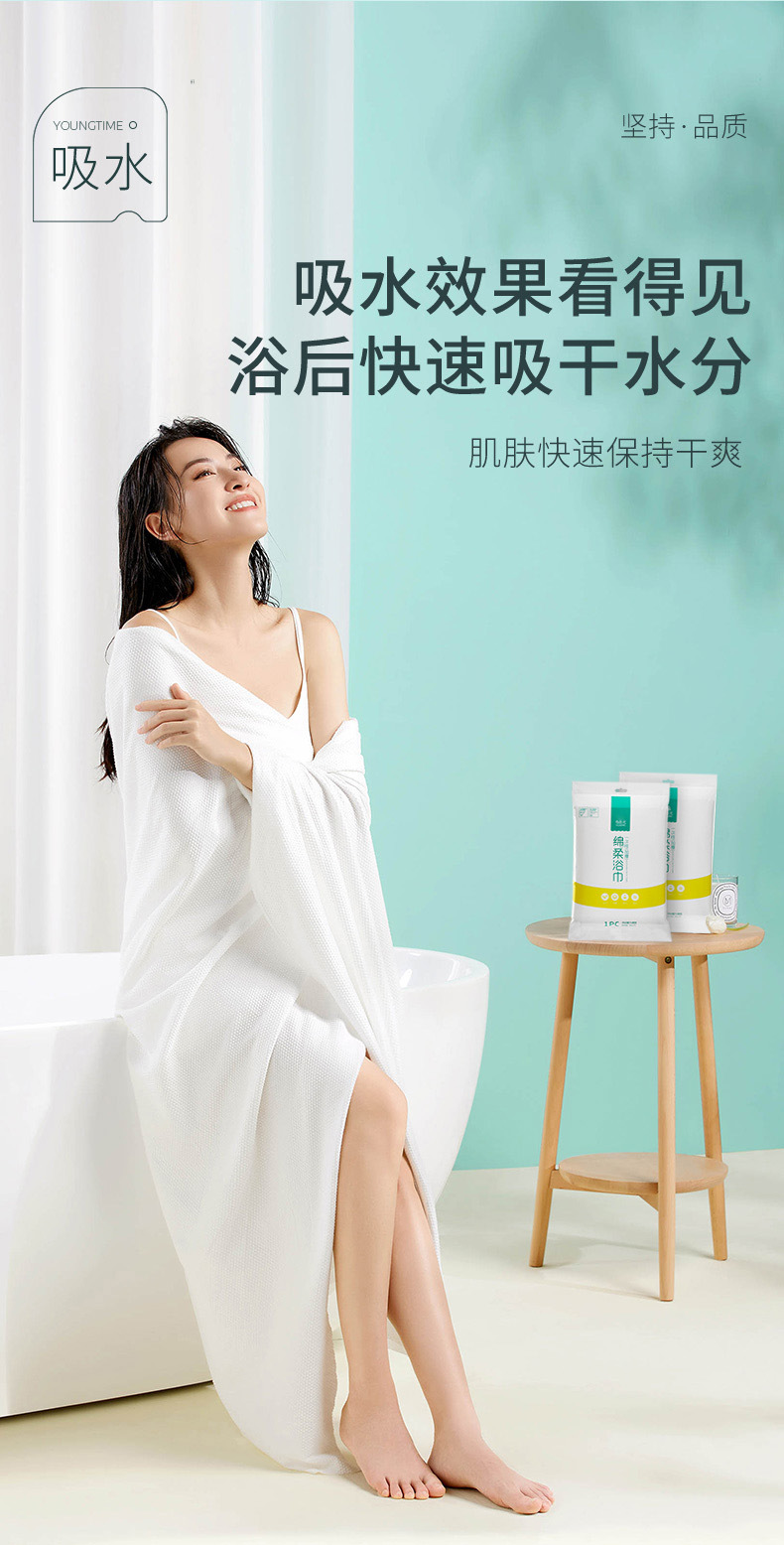 여행용, 호텔용, 출장용으로 특별히 제작된 두꺼운 대형 일회용 목욕 타월, 휴대가 간편하고 매우 부드러운 타월
