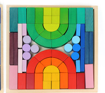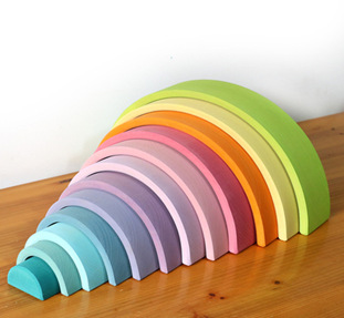 彩虹积木搭配彩虹球,半月片,火车轨道,磁力片都很合适,摆在家里怎么看都美