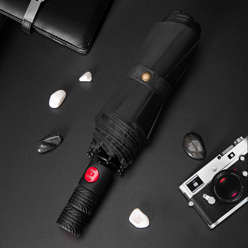抗风暴遮阳自动伞三折红色纤维骨架全自动雨伞男士防晒商务新款伞