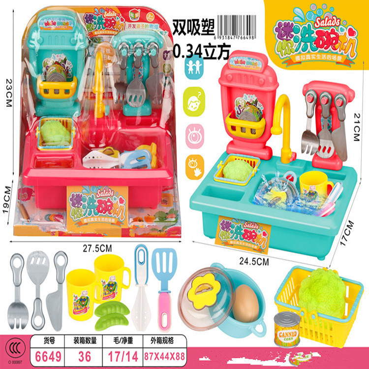 Mingzhi 장난감 어린이 가족 부모-어린이 대화 형 6649 식기 세척기 식기 세척기 스톨 장난감 도매 199,000