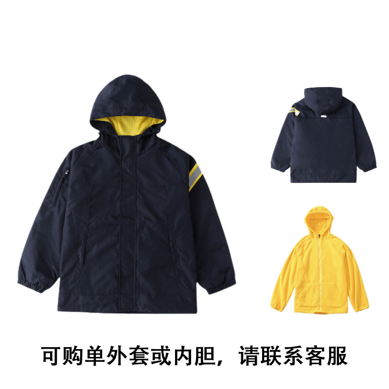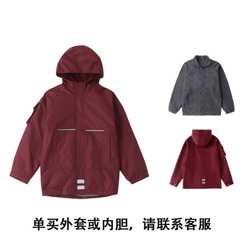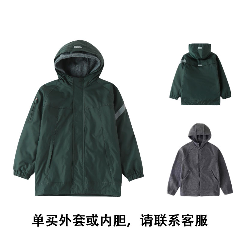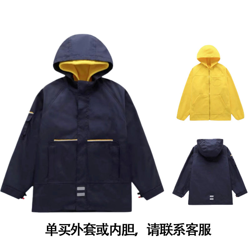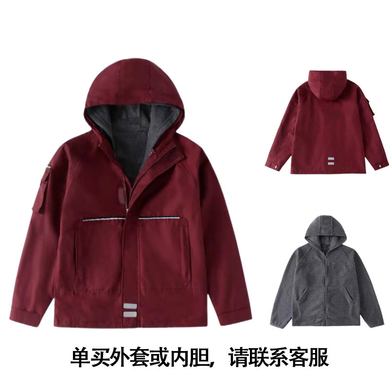 초등 및 중등 학생 야외 충전 의류 기모 투피스 어린이 코트 정원 의류 분리 가능한 라이너 후드 교복