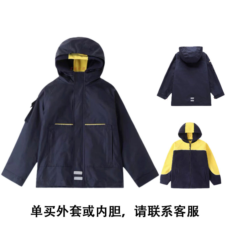 초등 및 중등 학생 야외 충전 의류 기모 투피스 어린이 코트 정원 의류 분리 가능한 라이너 후드 교복스토어 가기