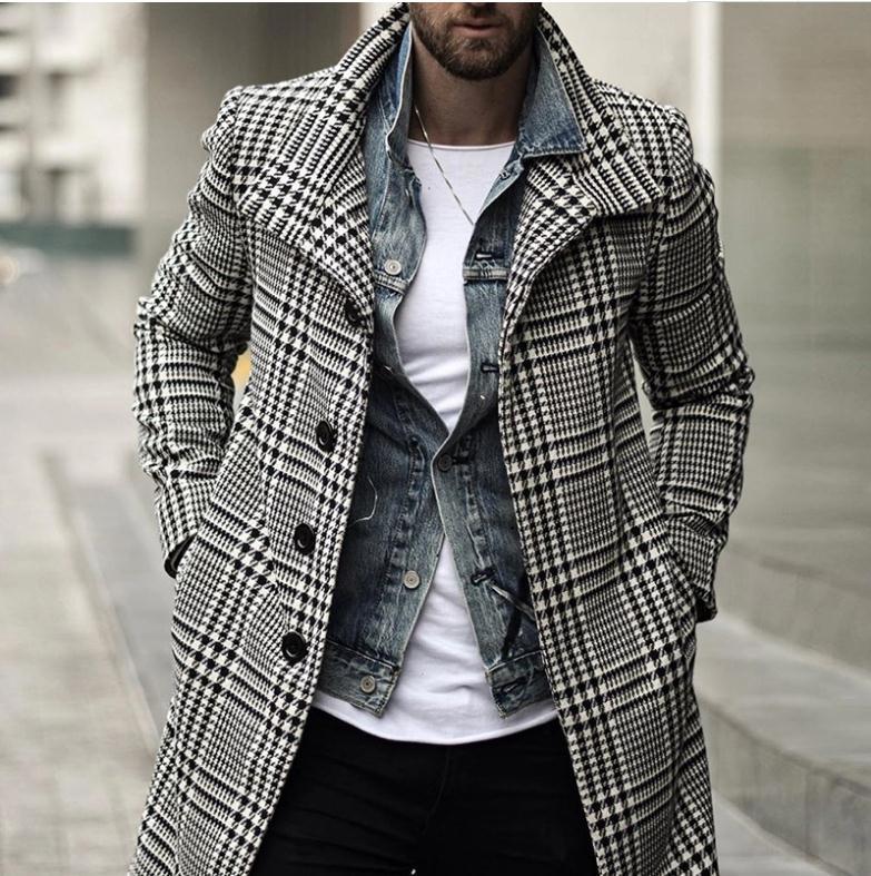 유럽과 미국의 대외 무역 신제품 패션 트렌드 라펠 싱글 브레스트 격자 무늬 중간 길이 윈드 브레이커 재킷을 공급하는 국경 간 재고 있음스토어 가기