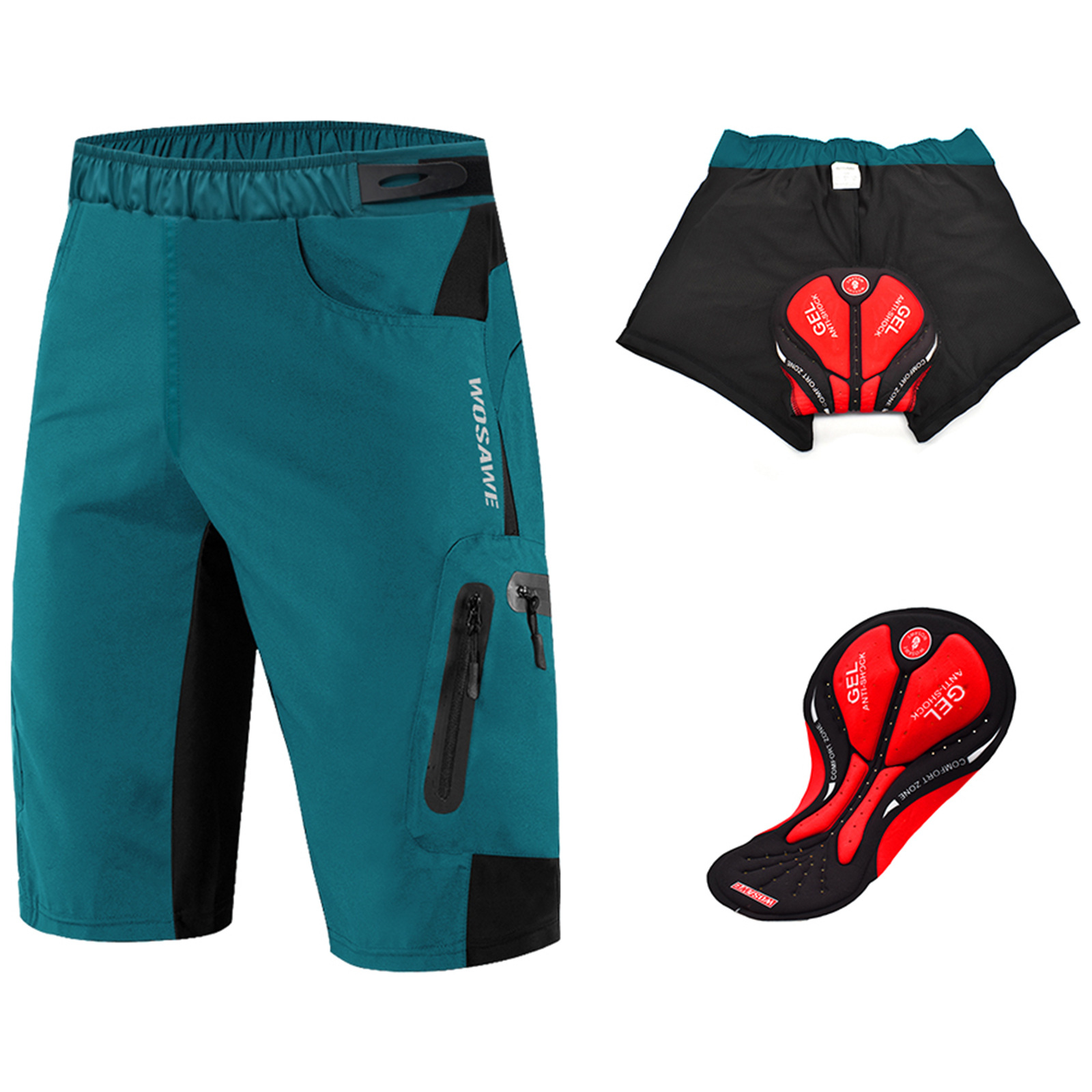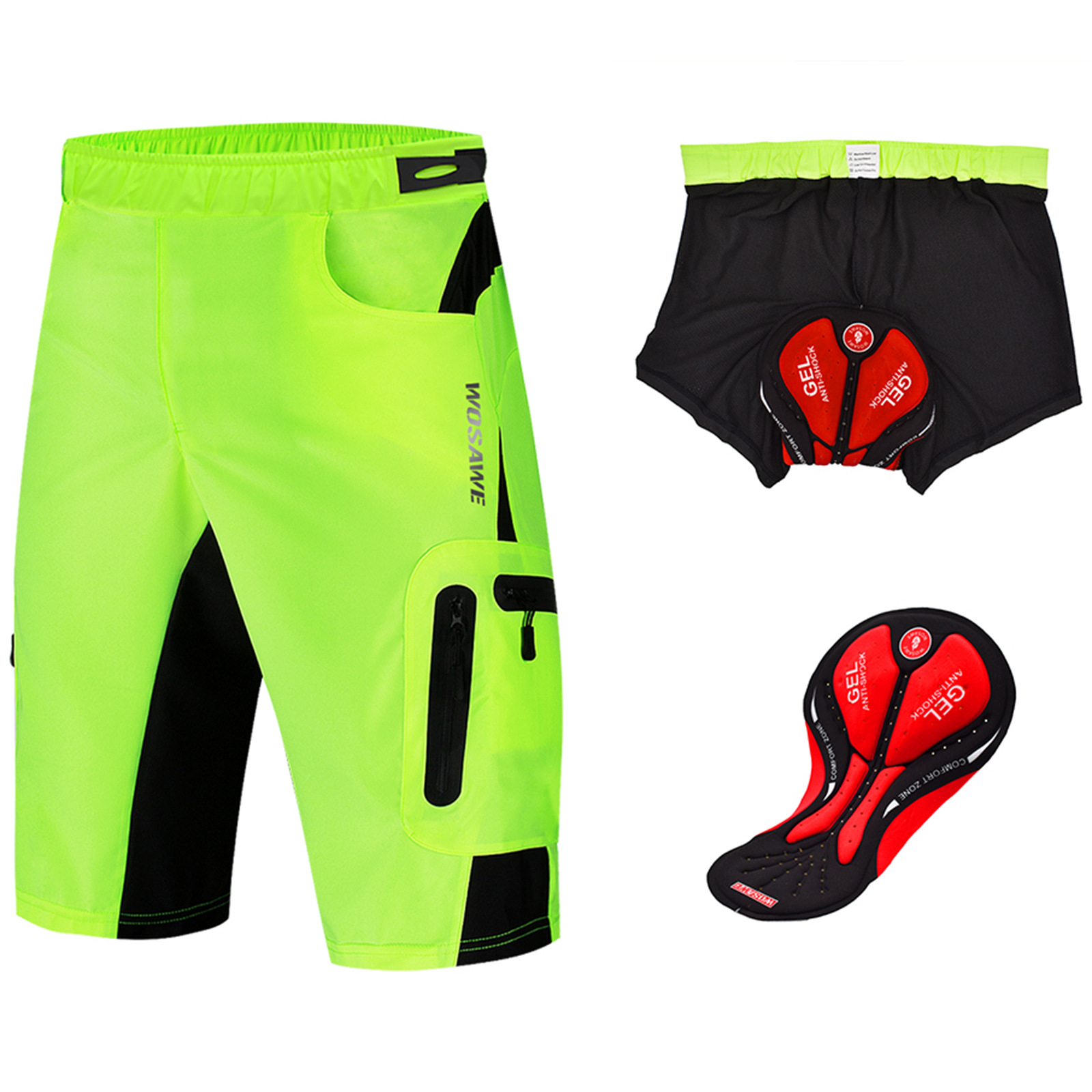 两件套短裤。内置3D填充内裤,提供您所拥有的最舒适的骑行体验,实用性强。
