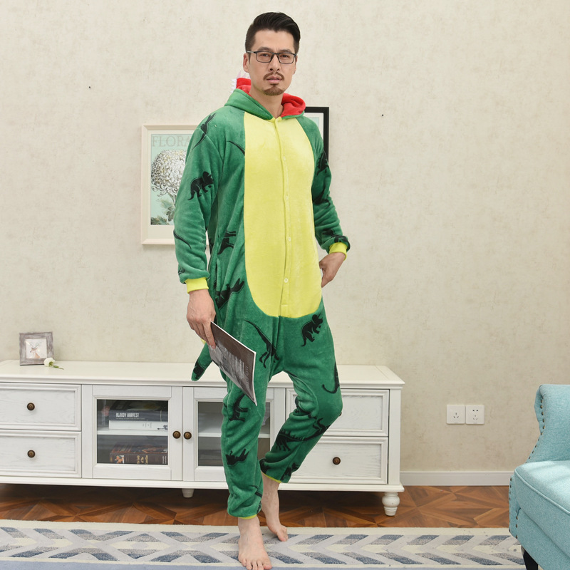 만화 스타일 커플 잠옷 공룡 플란넬 목욕 가운 봄 신상 홈웨어 대형 공룡 잠옷스토어 가기