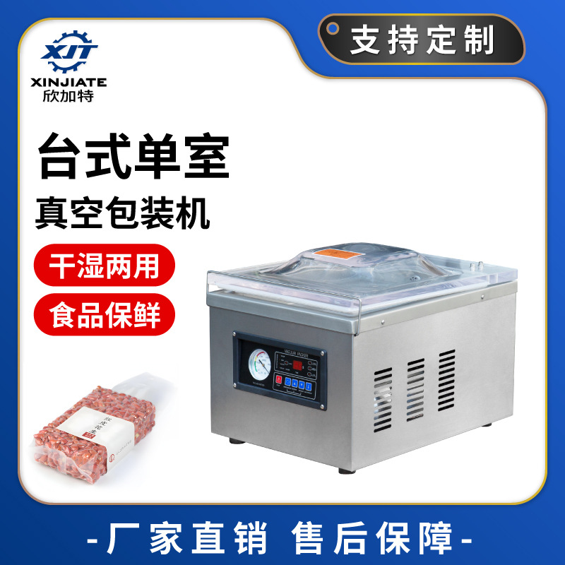 真空包装机、只需按下真空盖即可按设定的程序完成抽真空,或抽真空后充入惰性气体,封口、印字、冷却、排气的全过程。经抽真空包装后的物品防止氧化、霉变、虫蛀、受潮、延长产品储存期限,专供小型工厂家庭作坊商店等。产品机身采用201不锈钢、工作室采用304不锈钢、电脑版操作。