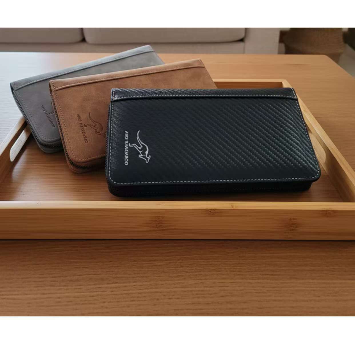 남자의 새로운 대용량 더블 지퍼 핸드백 지갑 도난 방지 브러시 다기능 지퍼 카드 가방 남성용 긴 지갑