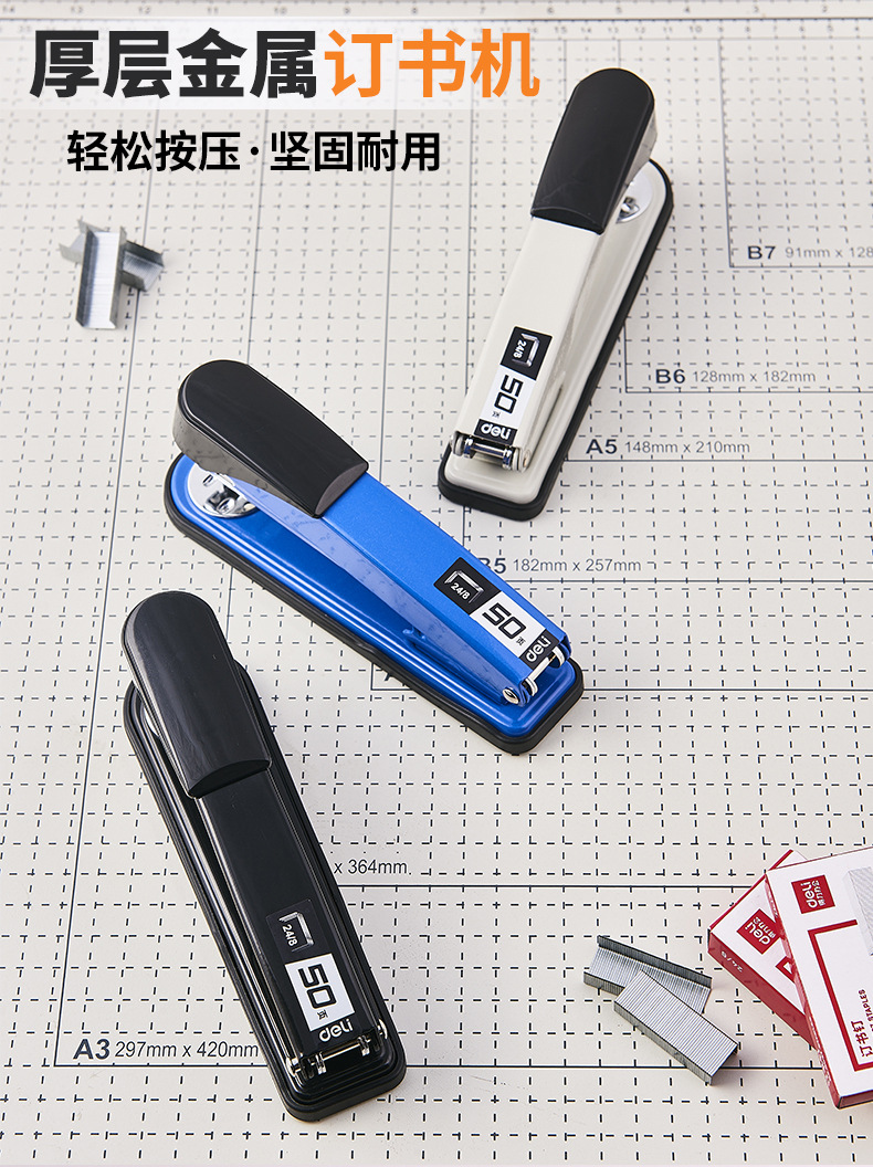 델리 0314 중간 스테이플러 무거운 농축 학생 50 페이지 A4 종이 스테이플러 스테이플러