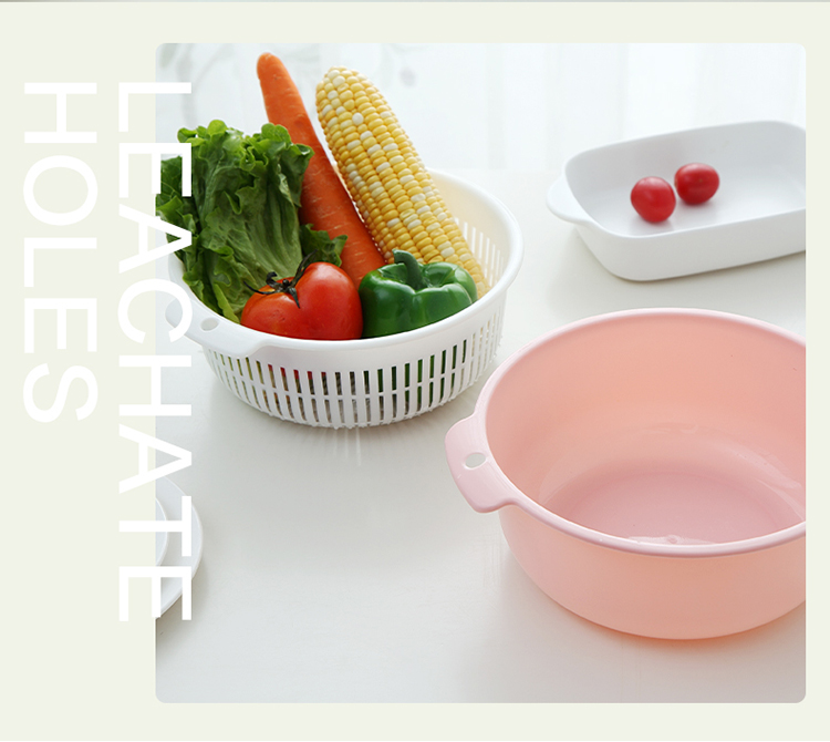 플라스틱 2 중 가정용 주방 다용도 중공 누수 바구니 과일 야채 배수 바구니 도매