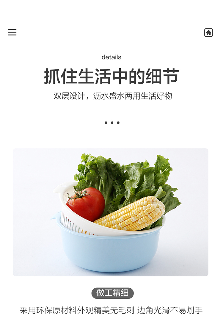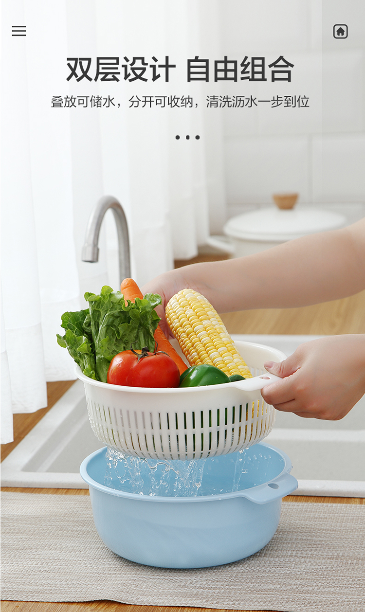 플라스틱 2 중 가정용 주방 다용도 중공 누수 바구니 과일 야채 배수 바구니 도매스토어 가기