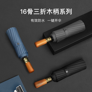 左都欧力猫同款全纤维16骨长柄雨伞实木柄全自动男士商务广告雨伞