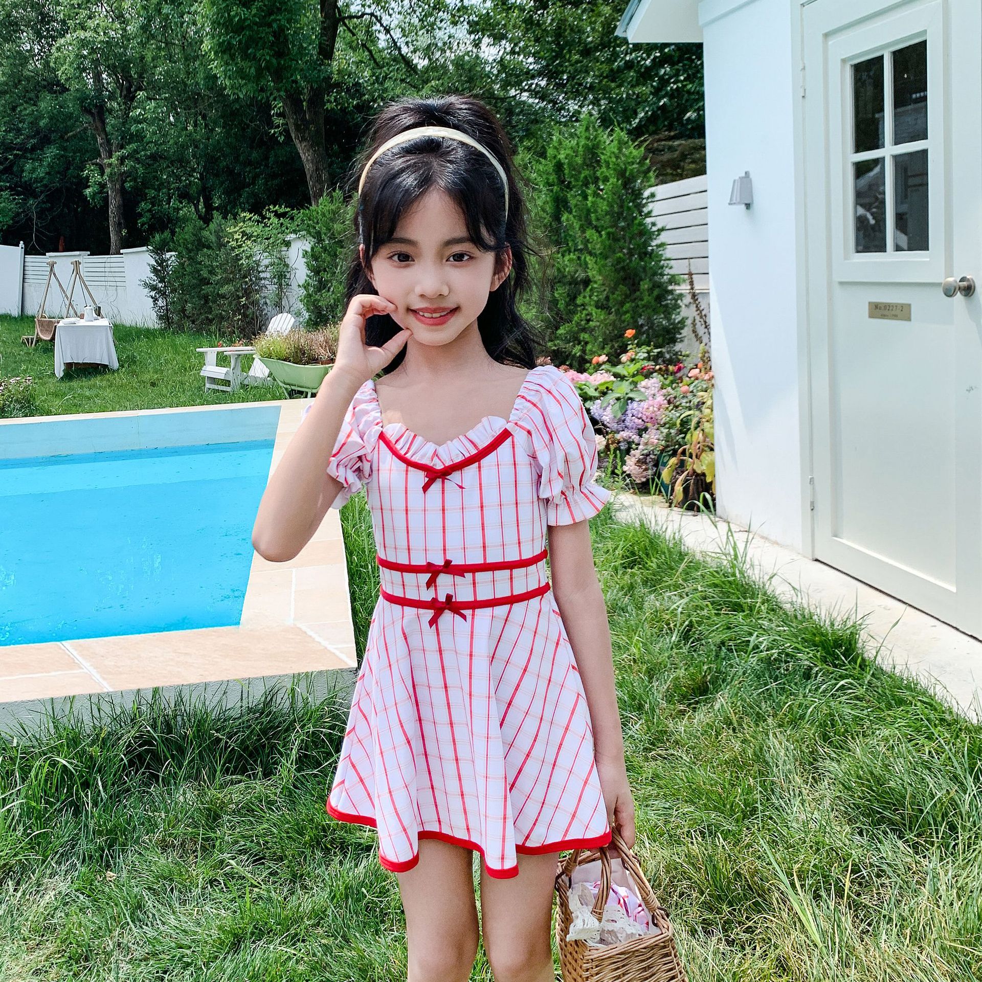 여성과 딸을위한 부모-자식 수영복 새로운 2020 한국 원피스 스커트 대형 어린이와 어린이를위한 보수적 인 배꼽 덮음 수영복스토어 가기