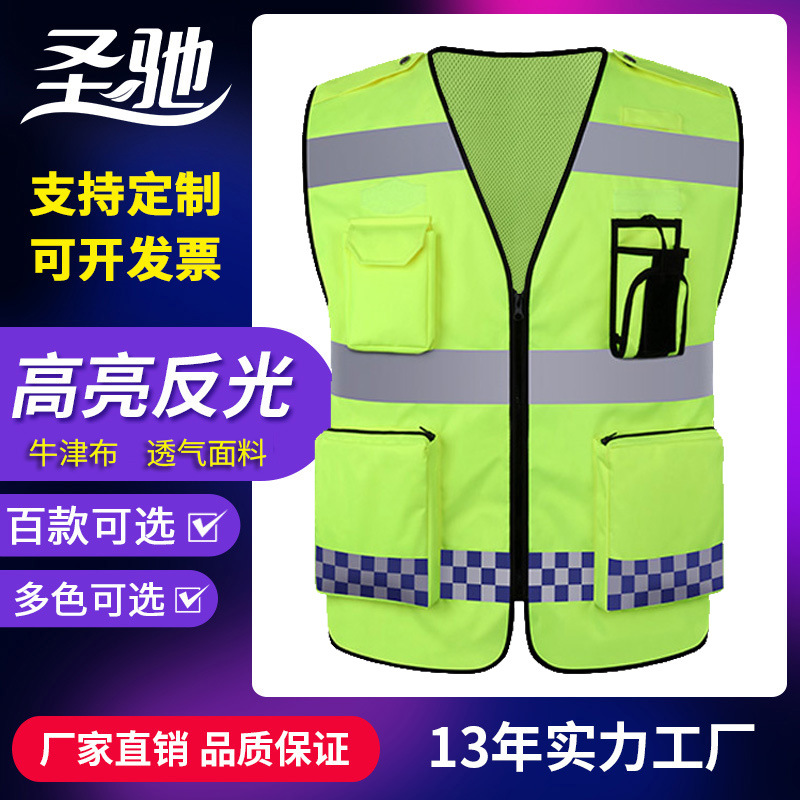 Shengchi 옥스포드 방수 반사 조끼 반사 조끼 반사 조끼 승마 교통 보안 순찰 통기성스토어 가기