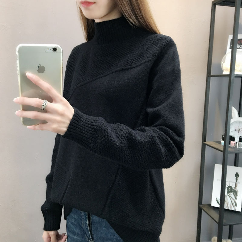 2024 가을 겨울 신상 한국 스타일 여성 니트 루즈핏 하프 터틀넥 스웨터 여성 베이스 레이어 풀오버 니트웨어스토어 가기