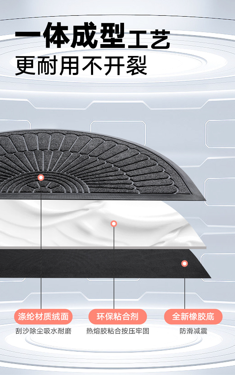국경 간 유럽식 입구 도어 반원형 고무 바닥 매트 내마모성 및 관리가 쉬운 가정용 상업용 출입 미끄럼 방지 고무 도어 매트
