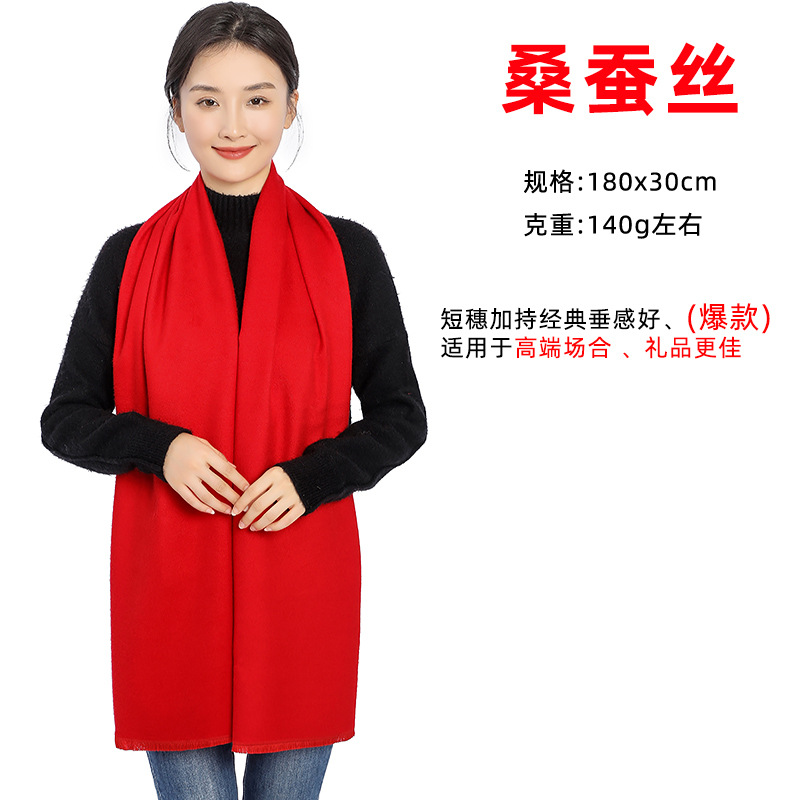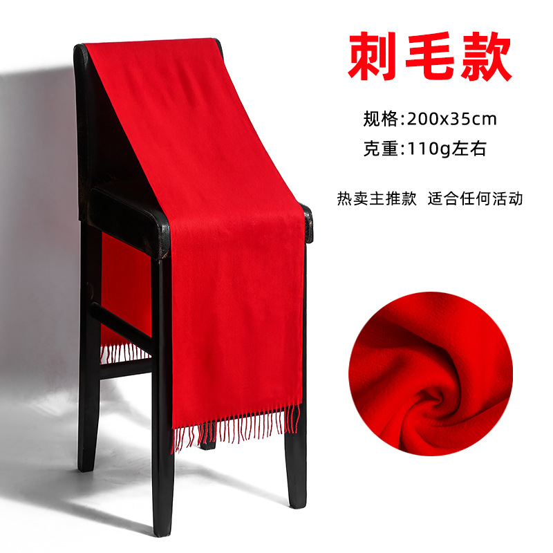 중국 빨간 스카프 인쇄 년 파티 활동 세트 로고 세트 dz 단색 자수 푸 스카프 공장 도매스토어 가기