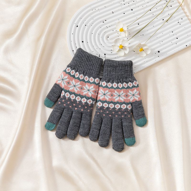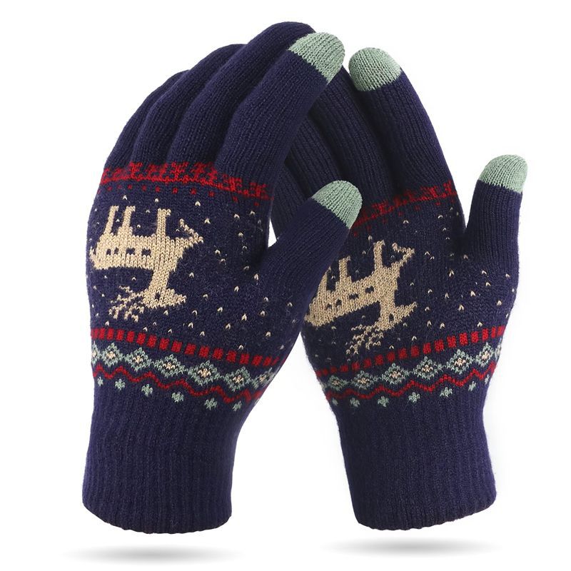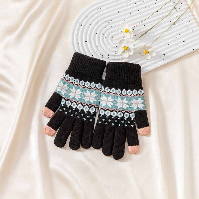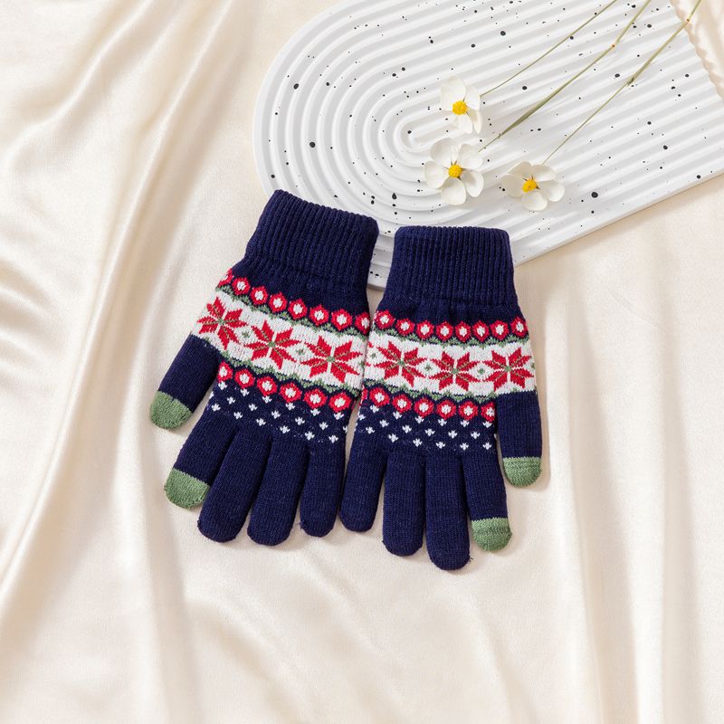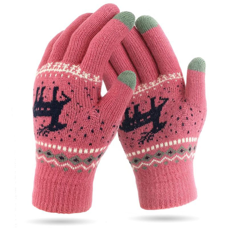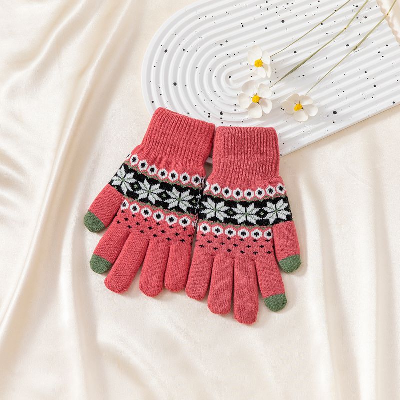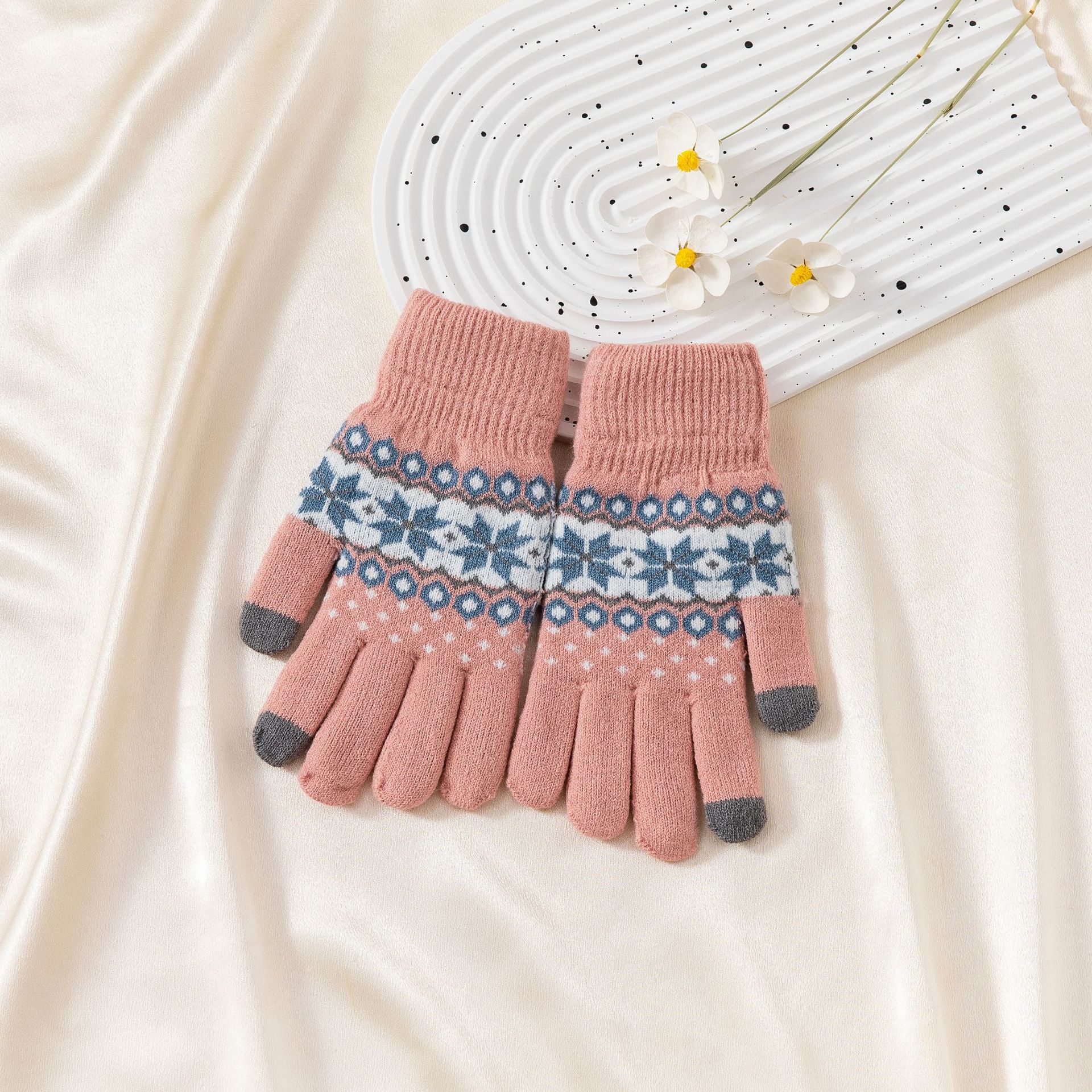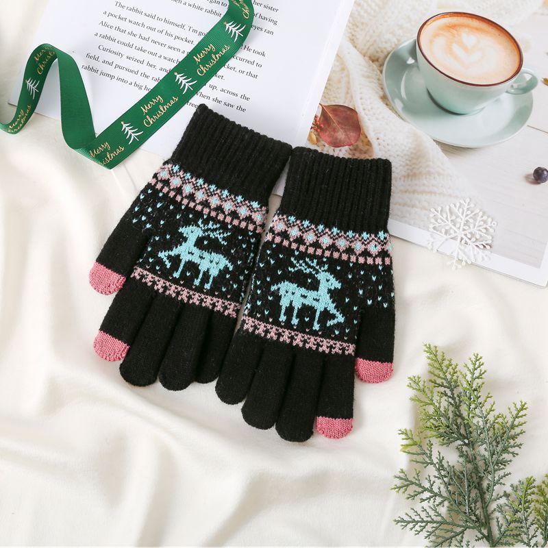 双层加厚加绒卡通小熊小鹿雪花保暖手套