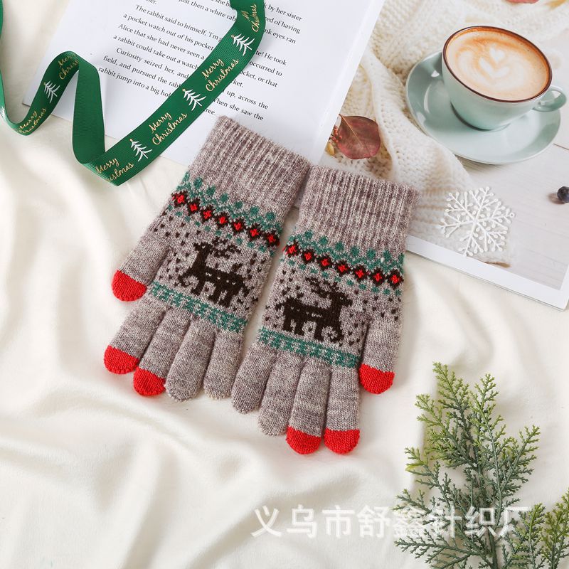 새로운 터치 스크린 장갑 제조 업체 도매 이중 두꺼운 기모 만화 곰 따뜻한 장갑 니트 사슴 여성 세트스토어 가기