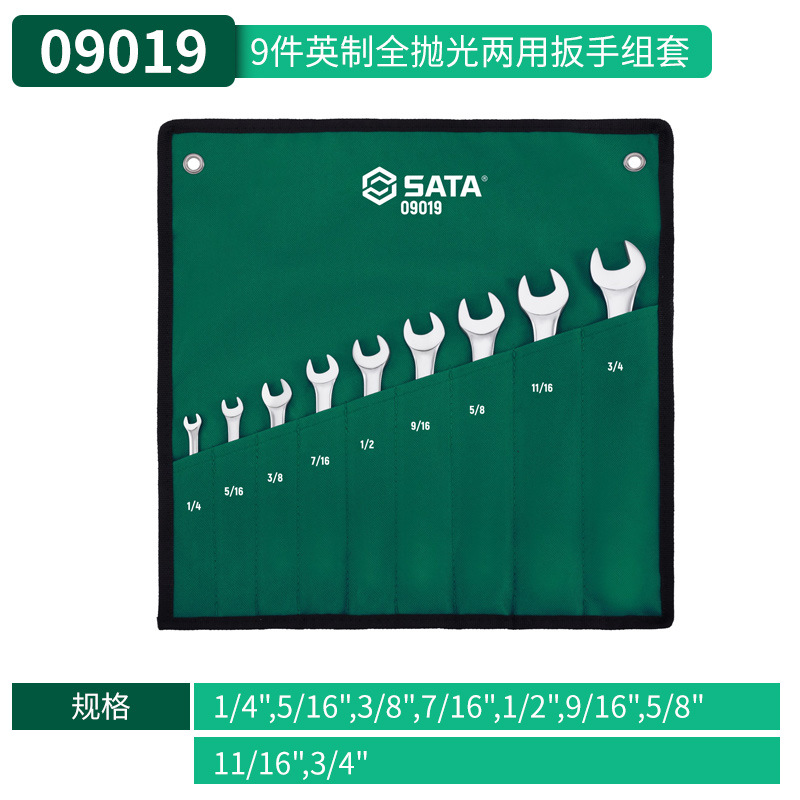 • 9019 9 피스 인치 완전 광택 이중 목적 렌치 세트