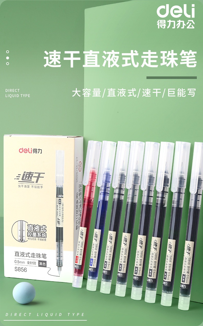 델리 S856 스트레이트 액상 젤펜 시그니처 펜 0.5 풀 니들 튜브 학생 수험 워터펜 속건성 연속 잉크