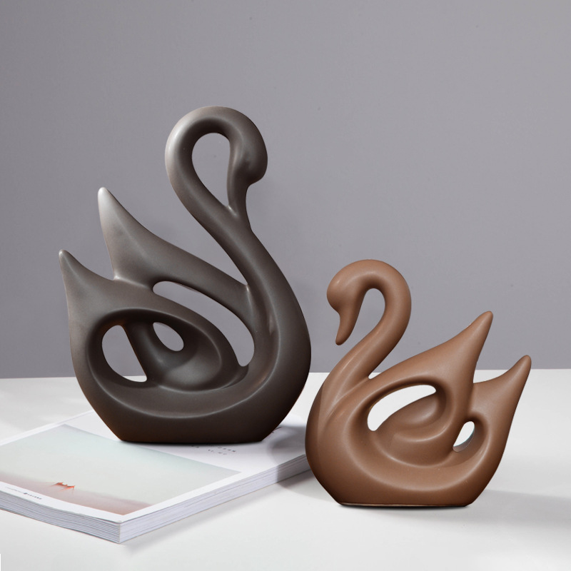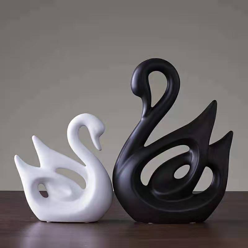 북유럽 간단한 홈 액세서리 장식품 흑백 커플 백조 세라믹 공예 거실 장식 결혼 선물