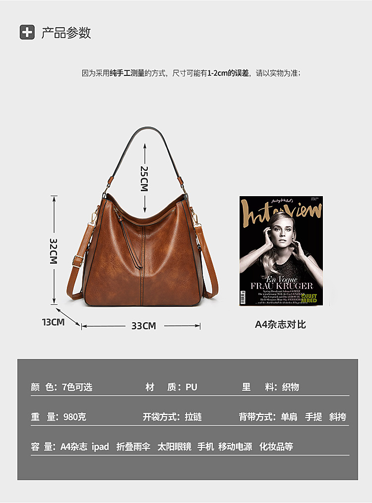 국경을 넘는 새로운 스타일의 출퇴근용 캐주얼 숄더백, 다용도 여성용 가방, 대용량 핸드백, 크로스백 여성용 가방