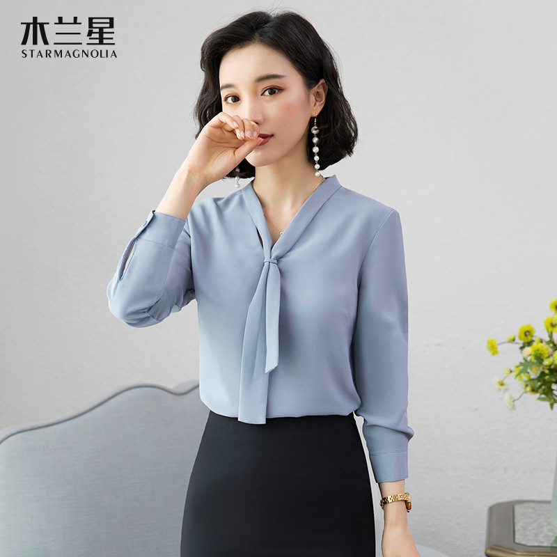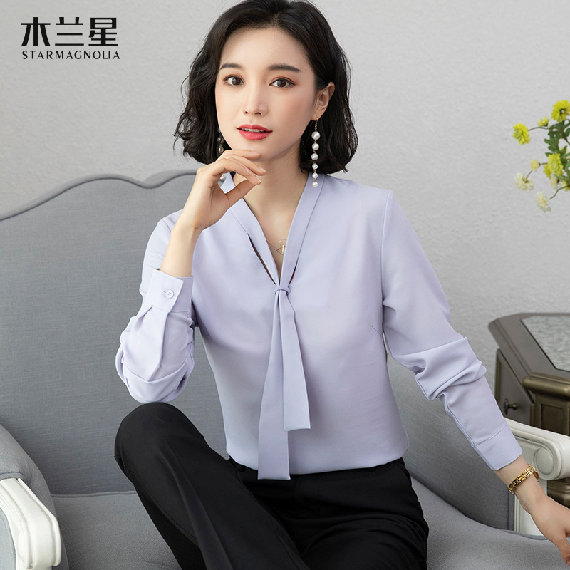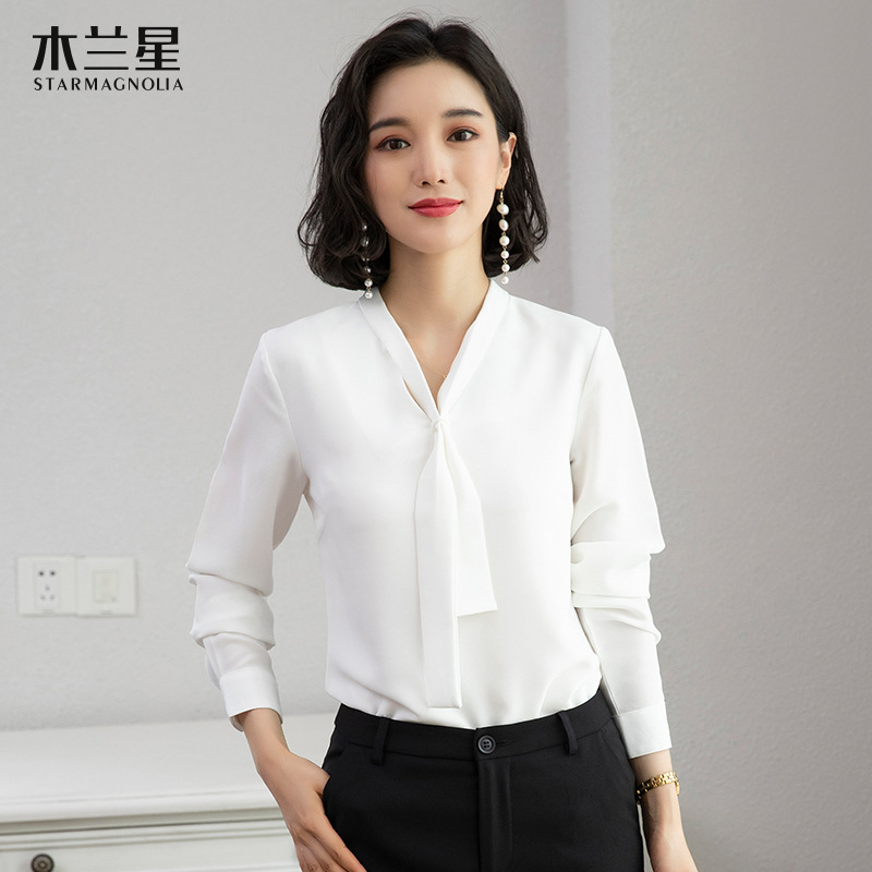 쉬폰 화이트 셔츠 여성용 비즈니스웨어 새로운 흰색 셔츠 긴팔 느슨한 얇은 비 다림질 여성용 작업대스토어 가기
