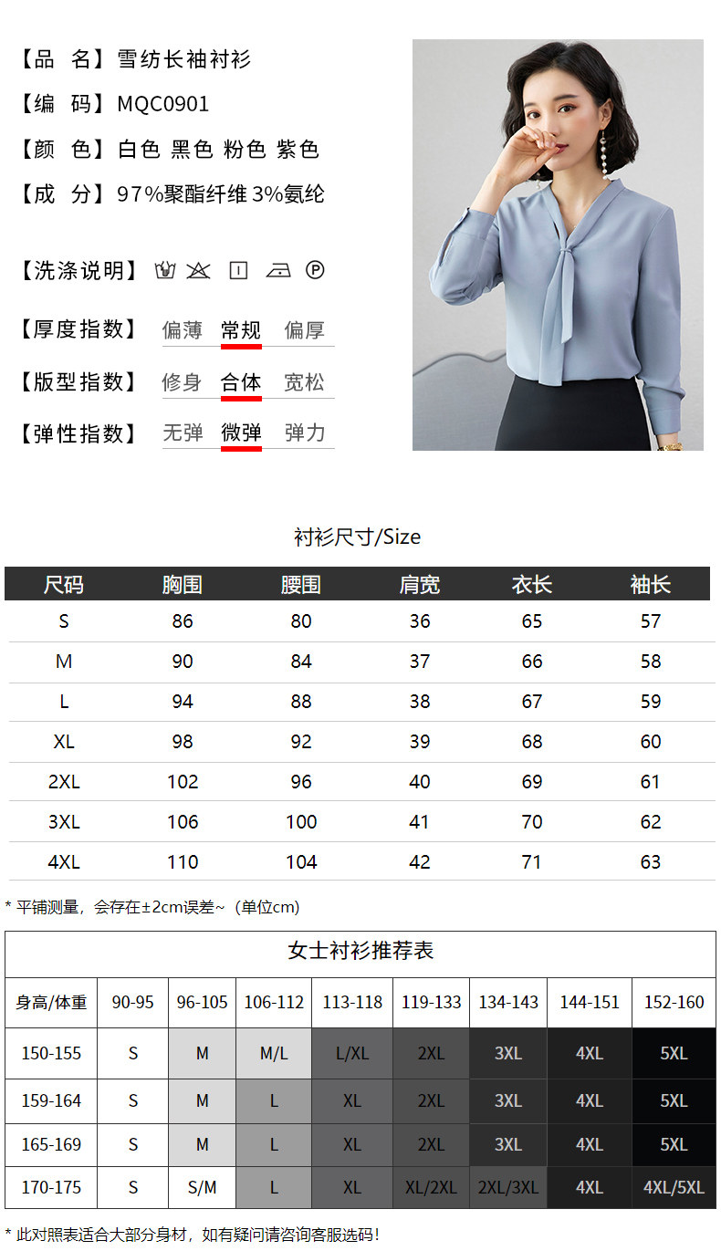 高品质雪纺衬衫,不掉色不起球