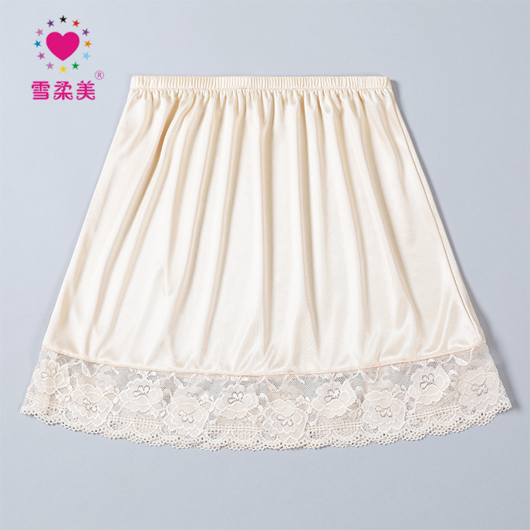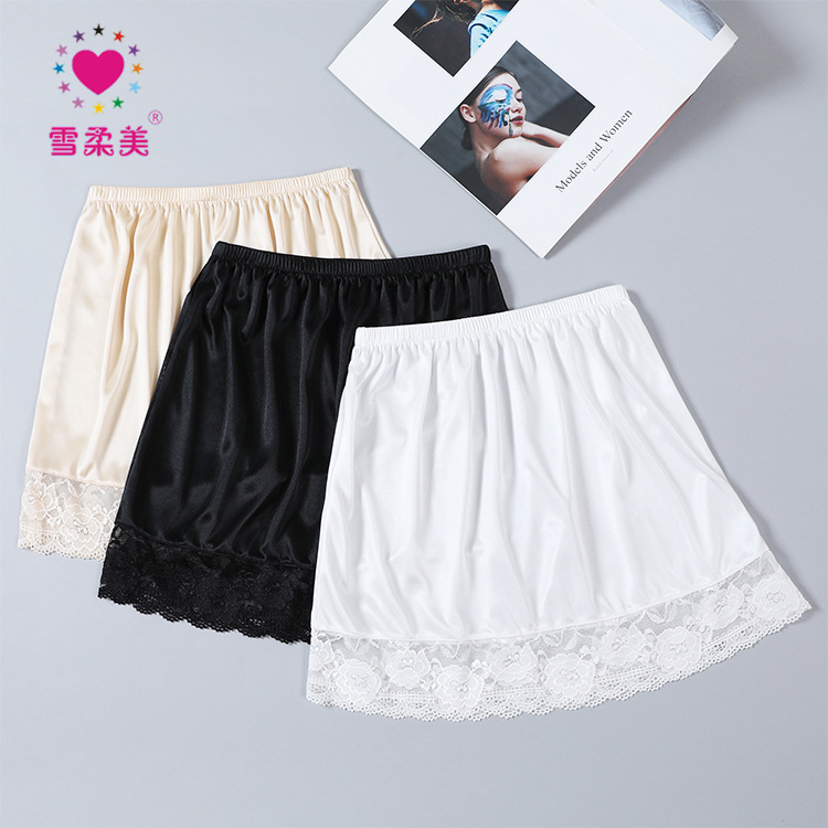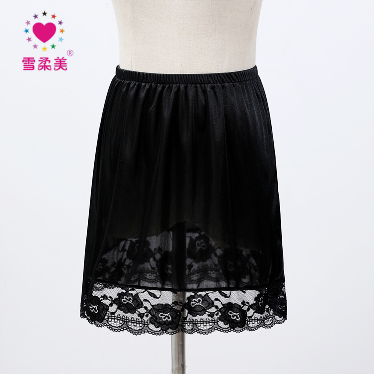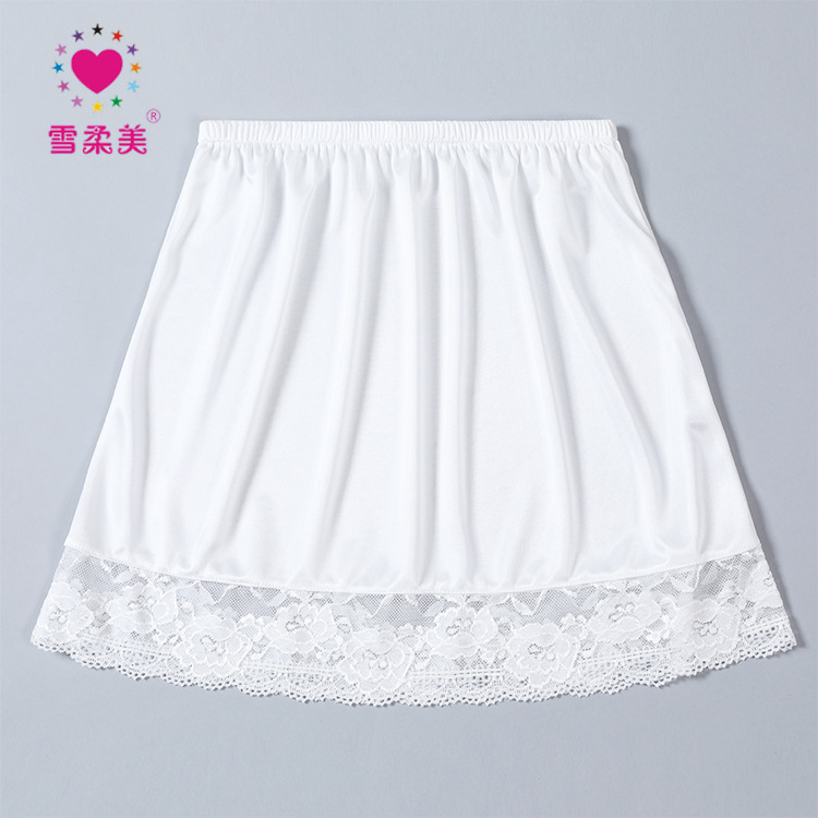 35cm 새로운 아이스 실크 베이스 스커트 하프 길이 2021 새로운 내부 페티코트 침투 방지 미끄럼 방지 레이스 스윙 미니 스커트스토어 가기
