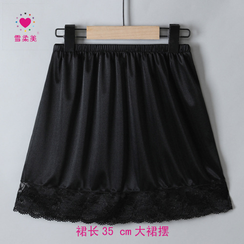 35cm 새로운 아이스 실크 베이스 스커트 하프 길이 2021 새로운 내부 페티코트 침투 방지 미끄럼 방지 레이스 스윙 미니 스커트
