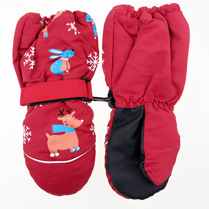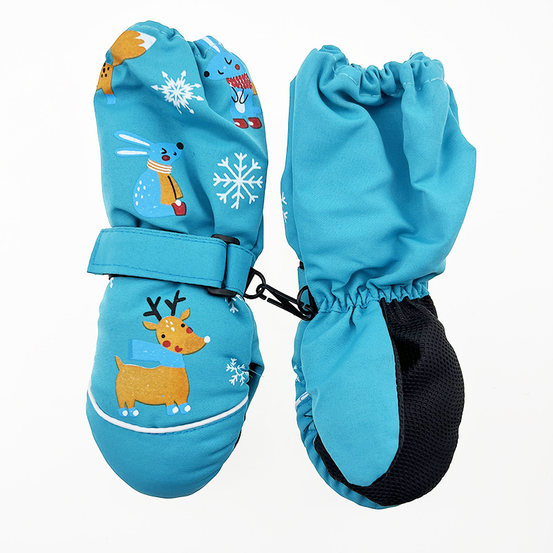 어린이 겨울 새 인쇄 사슴 토끼 만화 두꺼운 스키 장갑 방풍 방수 미끄럼 방지 긴 커프 장갑