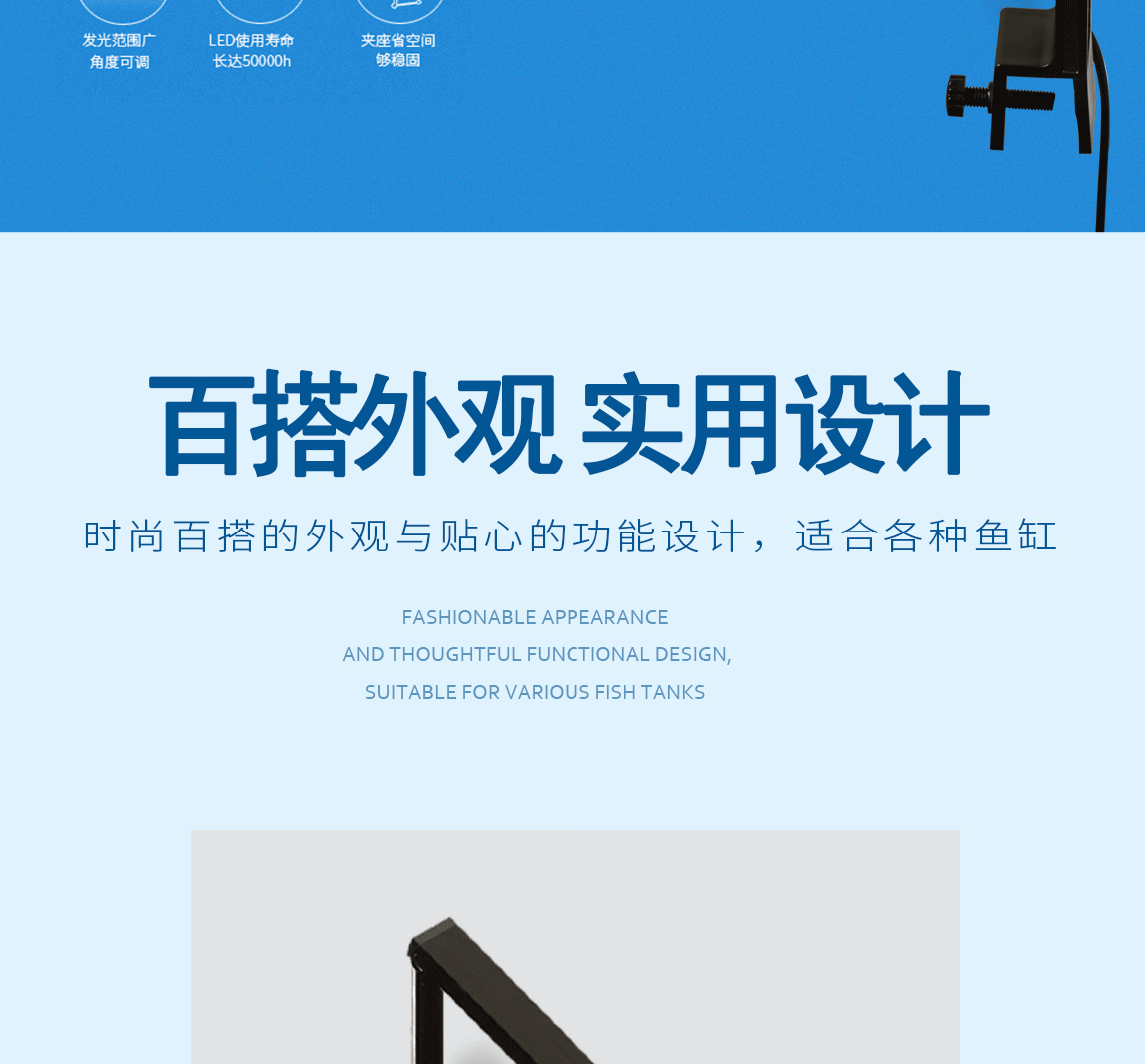 冠科跨境工厂直销鱼缸灯照明led全光谱水草灯小型水族箱专用夹灯