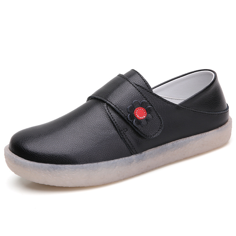 2022 봄 정품 가죽 플랫 간호사 신발 여성용 모든 매치 화이트 신발 통기성 및 편안한 더그 신발 작업 신발 어머니 신발