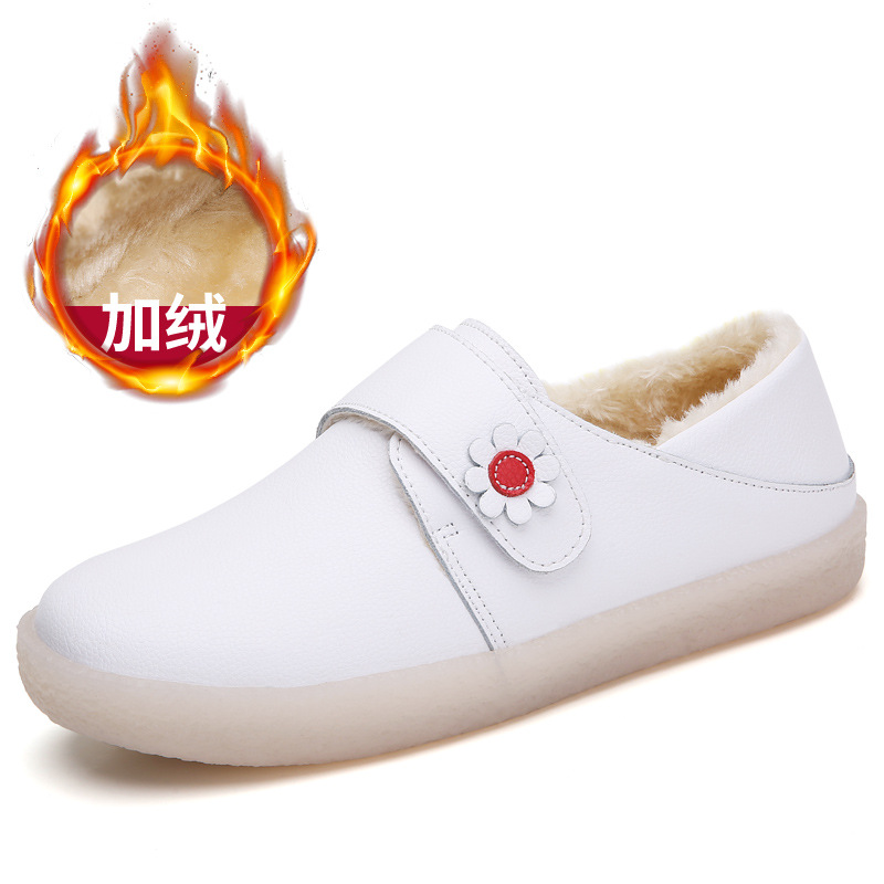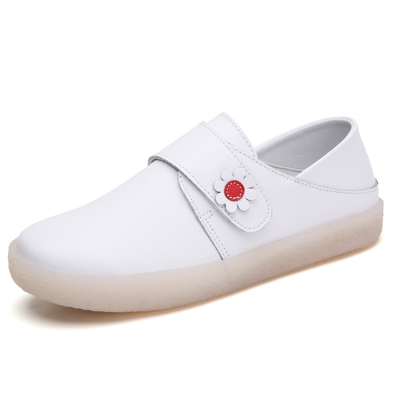 2022 봄 정품 가죽 플랫 간호사 신발 여성용 모든 매치 화이트 신발 통기성 및 편안한 더그 신발 작업 신발 어머니 신발스토어 가기