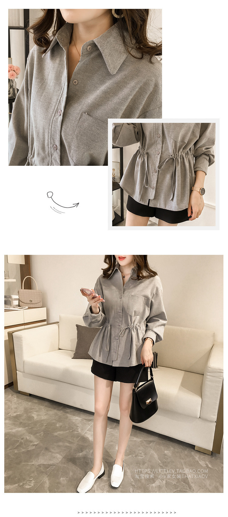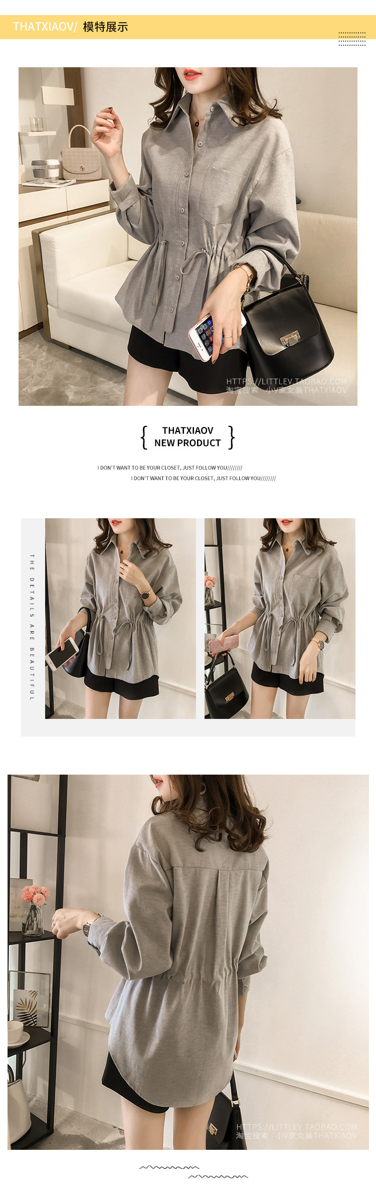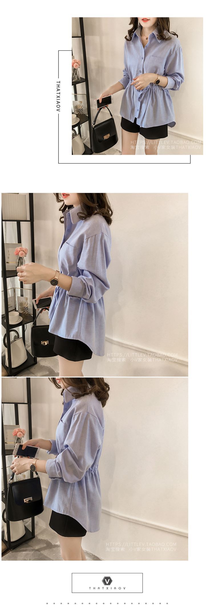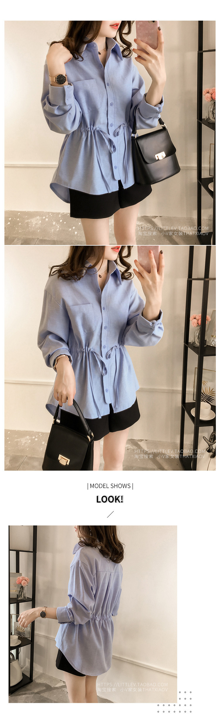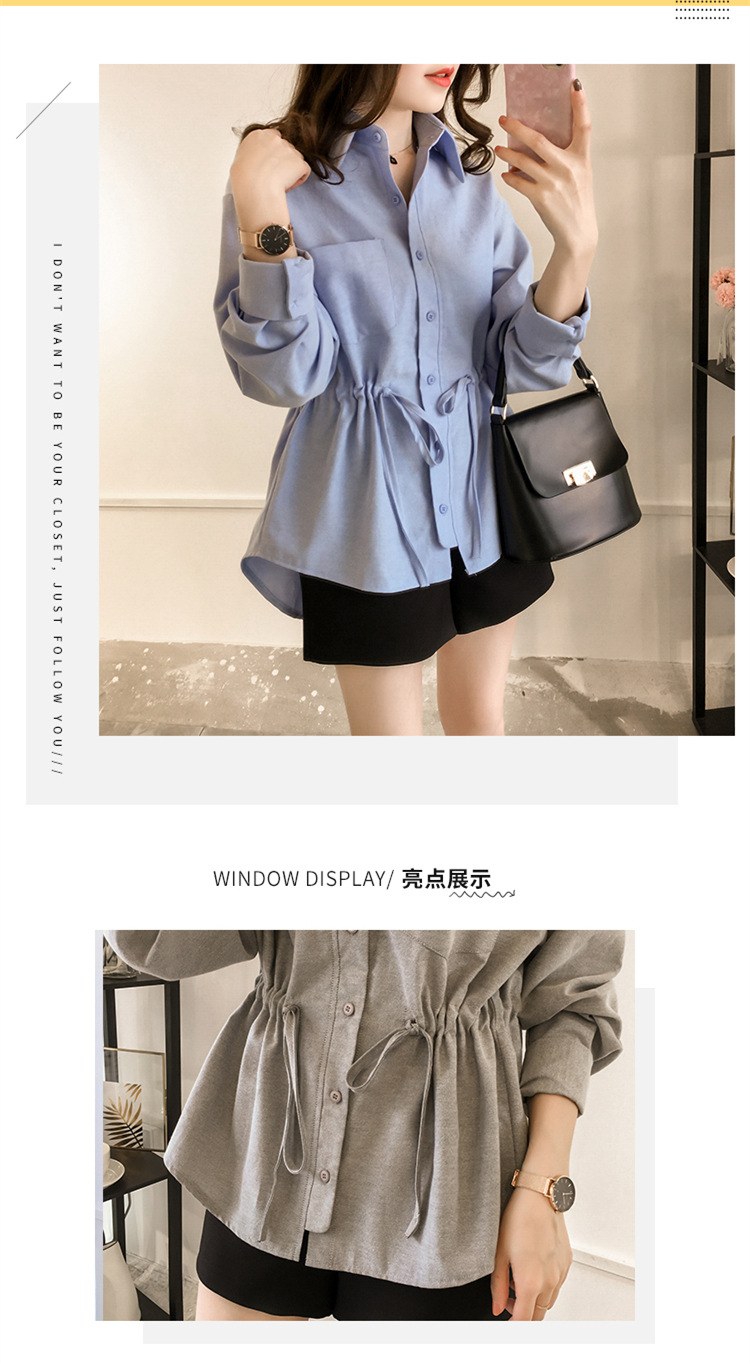 2025 가을 대형 사이즈 여성 긴팔 티셔츠 허리 조임 스타일 셔츠 여성 중간 길이 상의스토어 가기