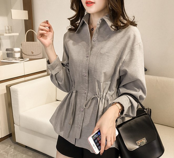2025 가을 대형 사이즈 여성 긴팔 티셔츠 허리 조임 스타일 셔츠 여성 중간 길이 상의