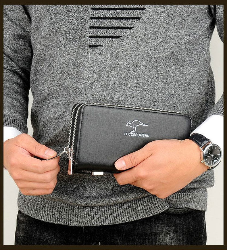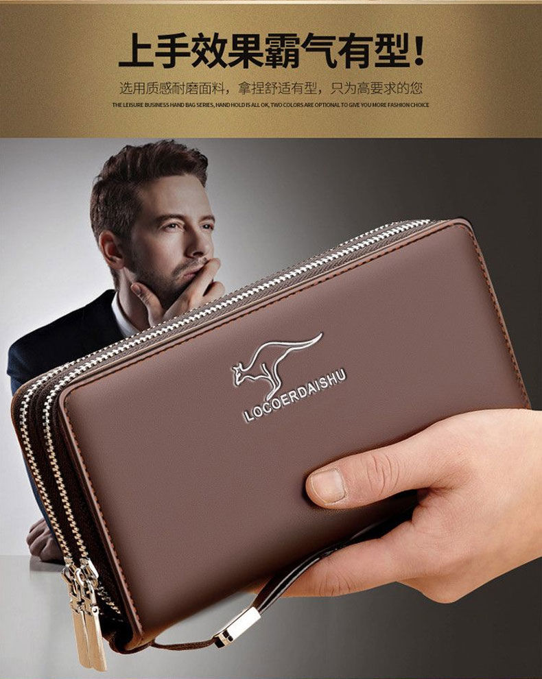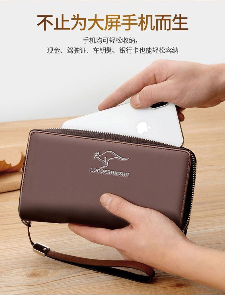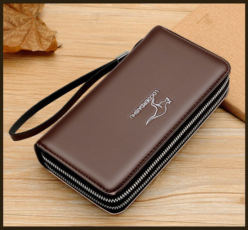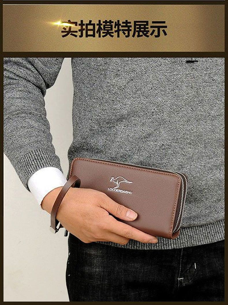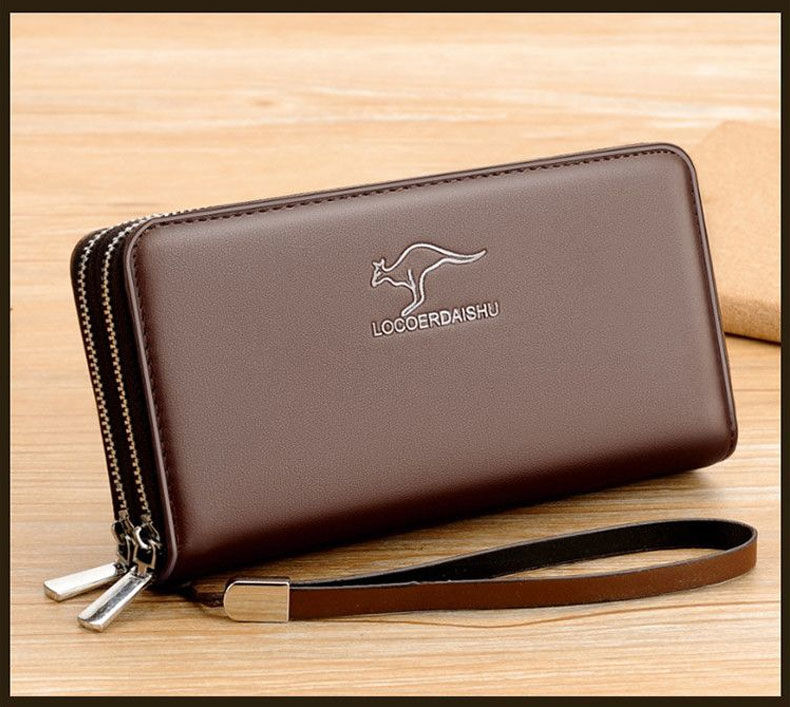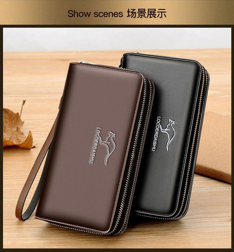 • 캥거루 대용량 더블 지퍼 다크 브라운 [도난 방지 핸드 로프 보내기]