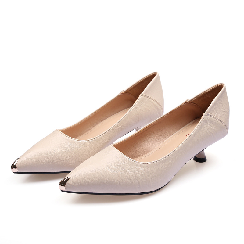2023 봄 여름 가을 부드러운 가죽 뾰족한 금속 머리 안티 킥 얕은 고양이 힐 스틸레토 힐 여성의 새로운 흑인 직업