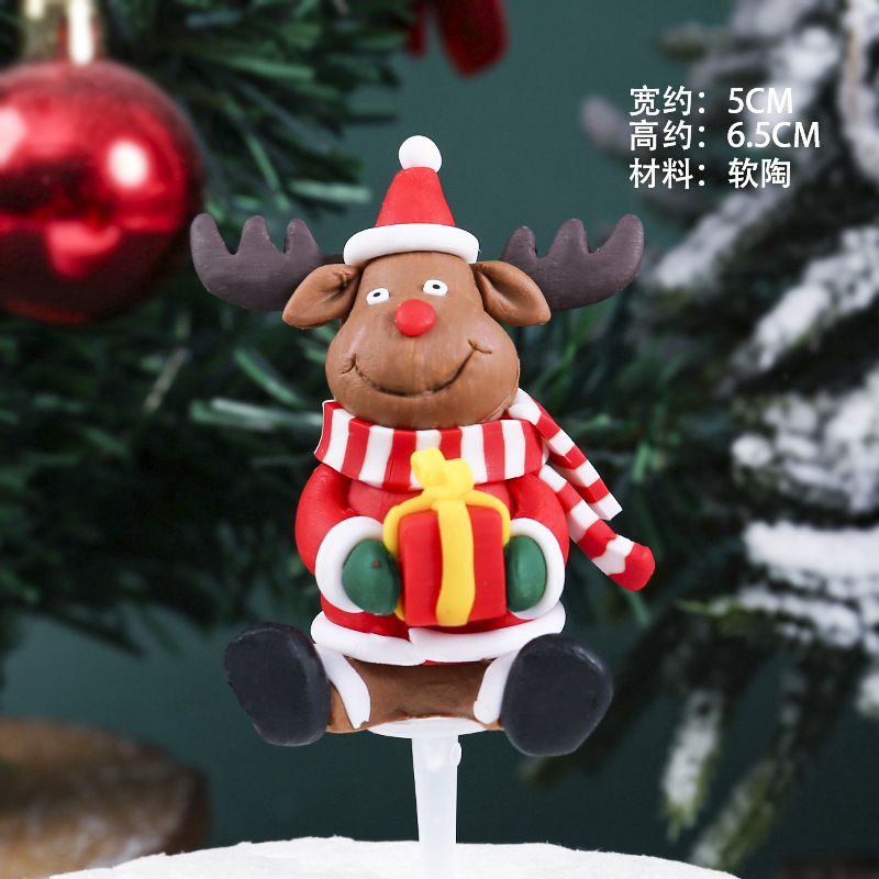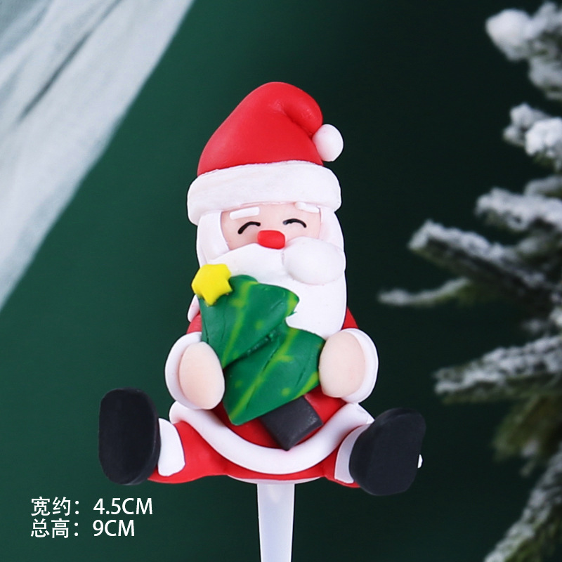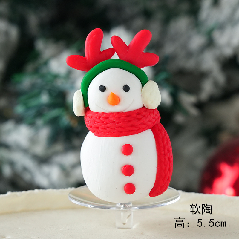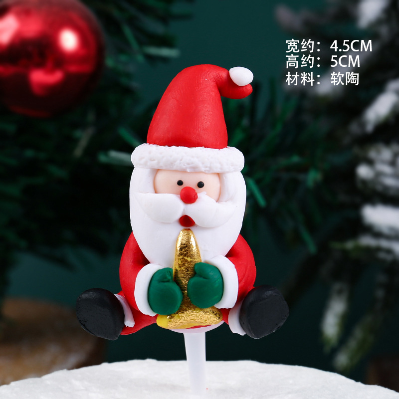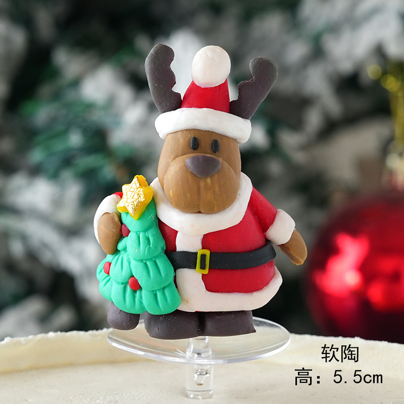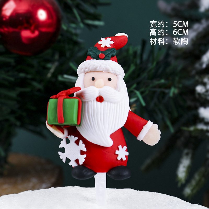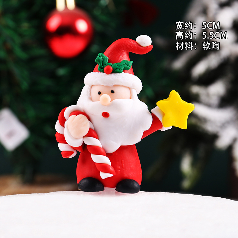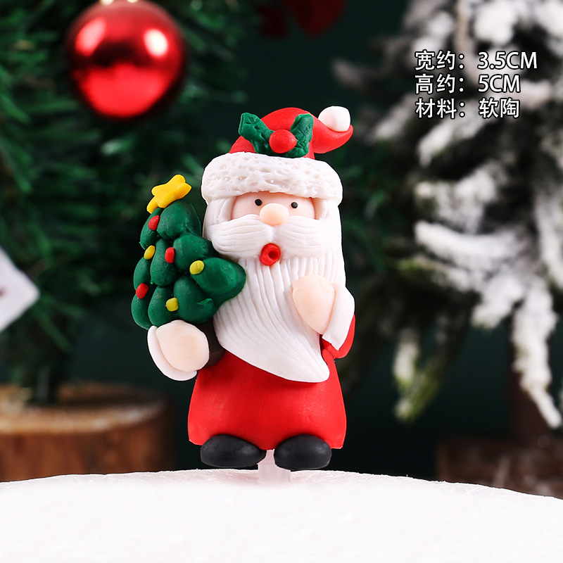 부드러운 점토 산타 클로스 케이크 장식 장식품 크리스마스 트리 작은 엘크 눈사람 축제 생일 디저트 테이블 장식스토어 가기