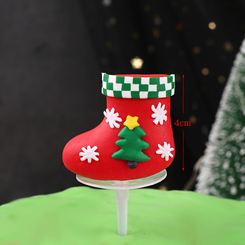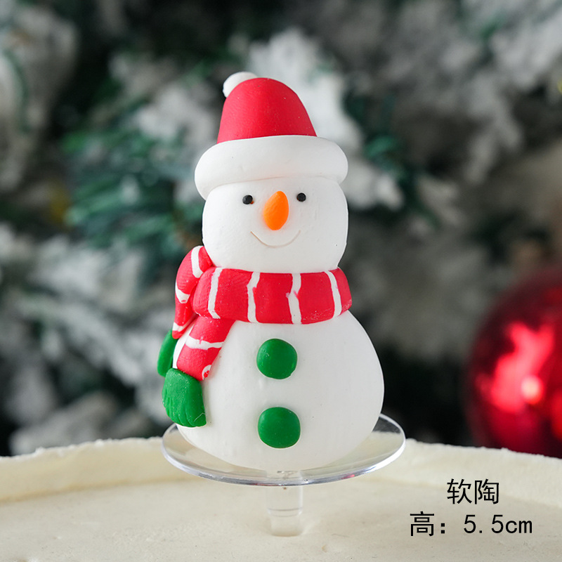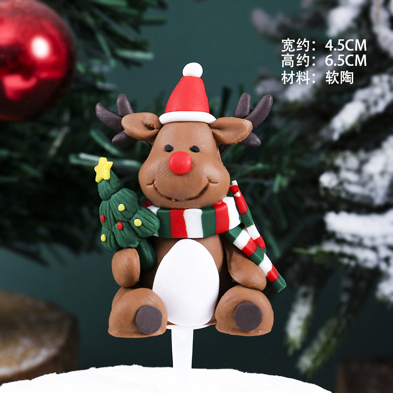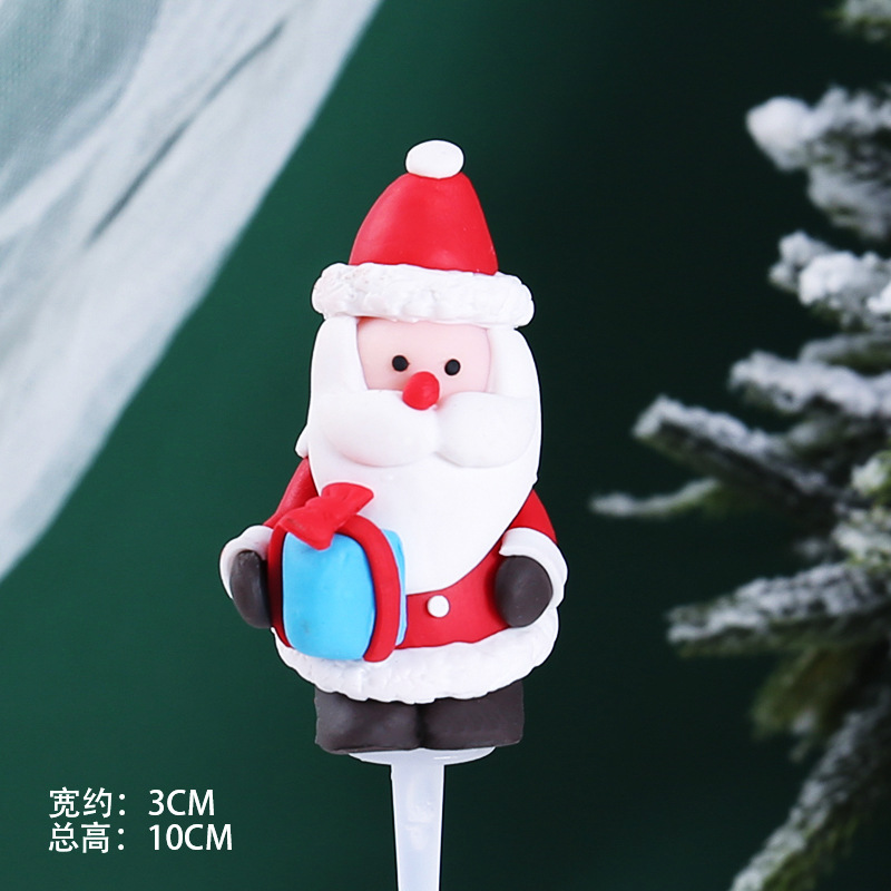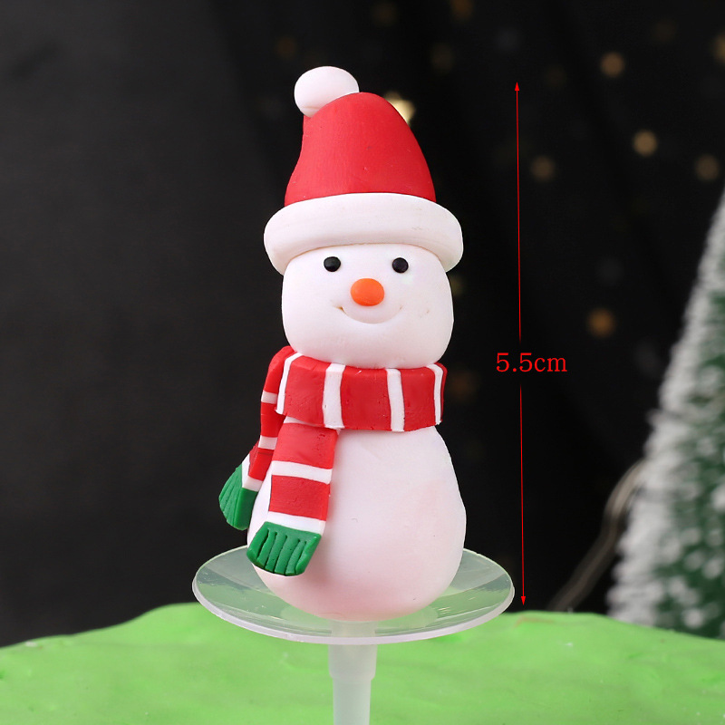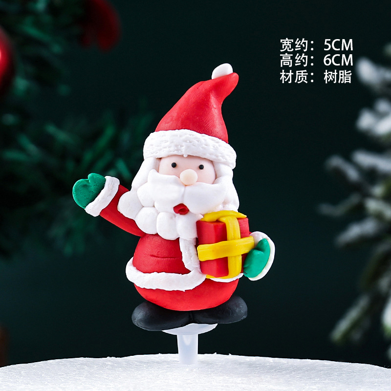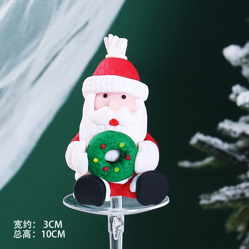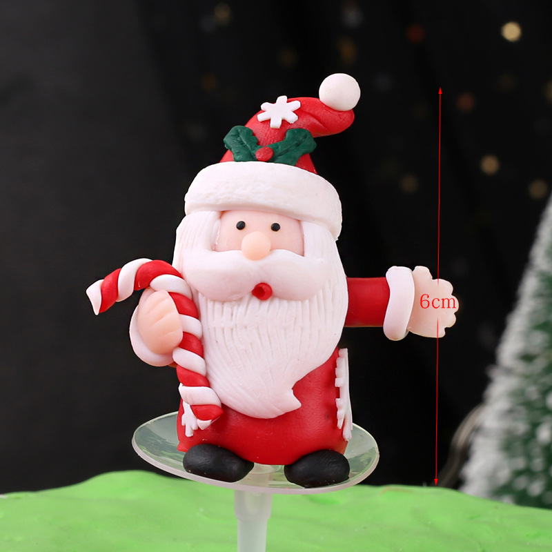 부드러운 점토 산타 클로스 케이크 장식 장식품 크리스마스 트리 작은 엘크 눈사람 축제 생일 디저트 테이블 장식스토어 가기
