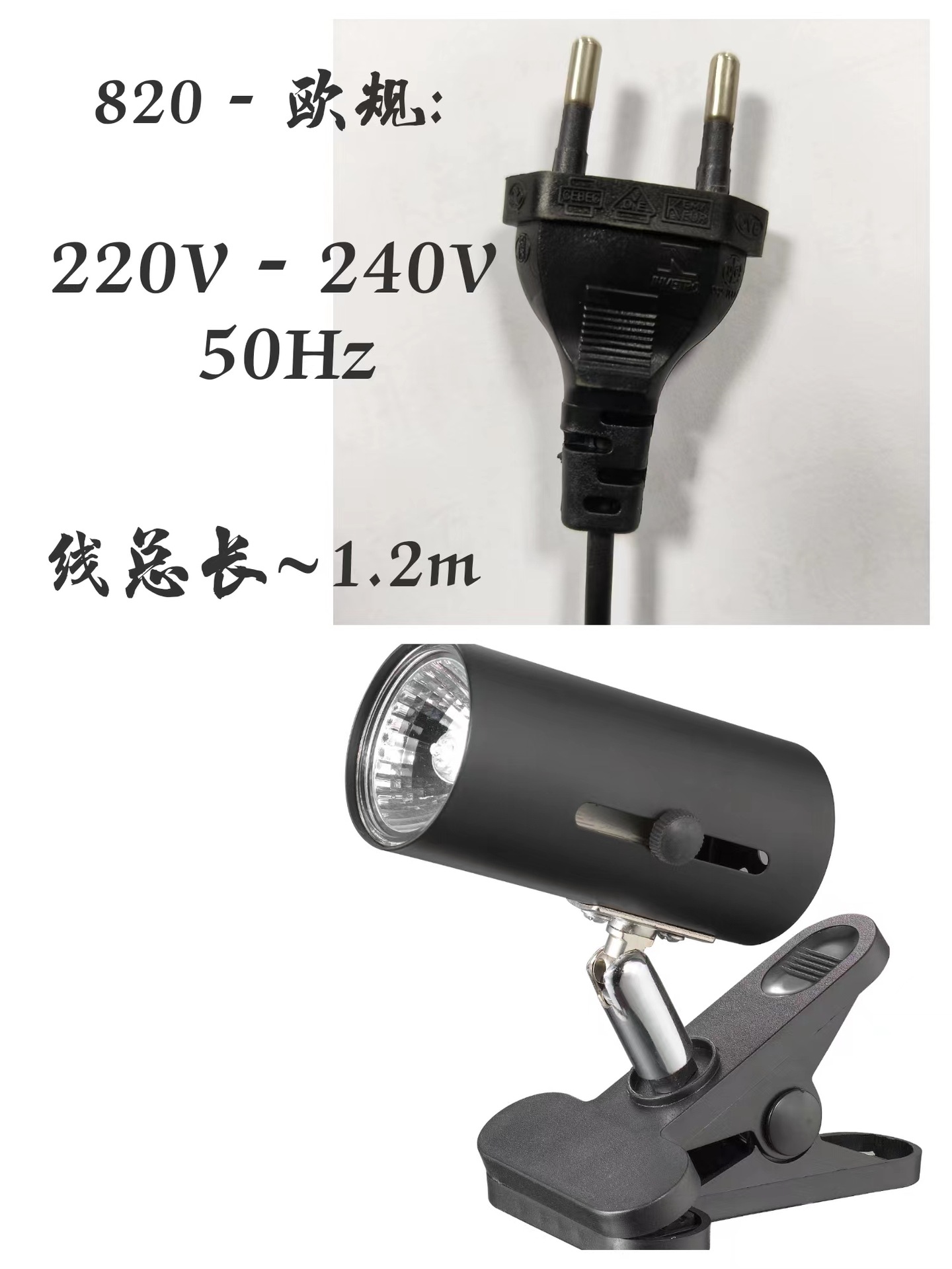 • 820-검은색 중간 게이지, 220V-240V-50Hz + E27 할로겐 전구