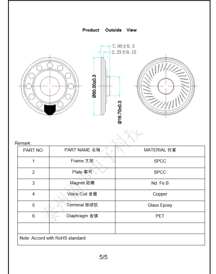 50 스피커 8cm 0.5W 크기 50*7.5mm 내부 자기 얇은 스피커 버스 카드 리더 스피커 연료스토어 가기