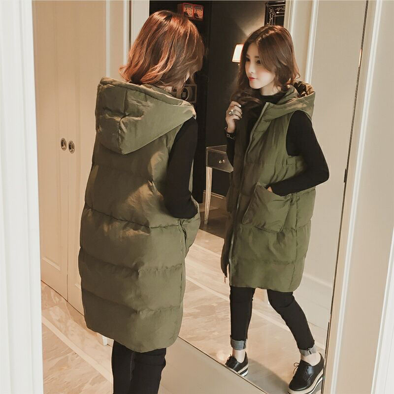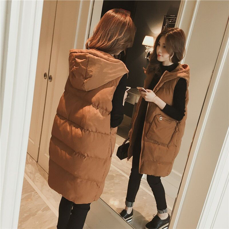 대외 무역 다운 코튼 조끼 여성 가을, 겨울 한국 스타일 다목적 느슨한 대형 중간 길이 학생 코튼 조끼 재킷