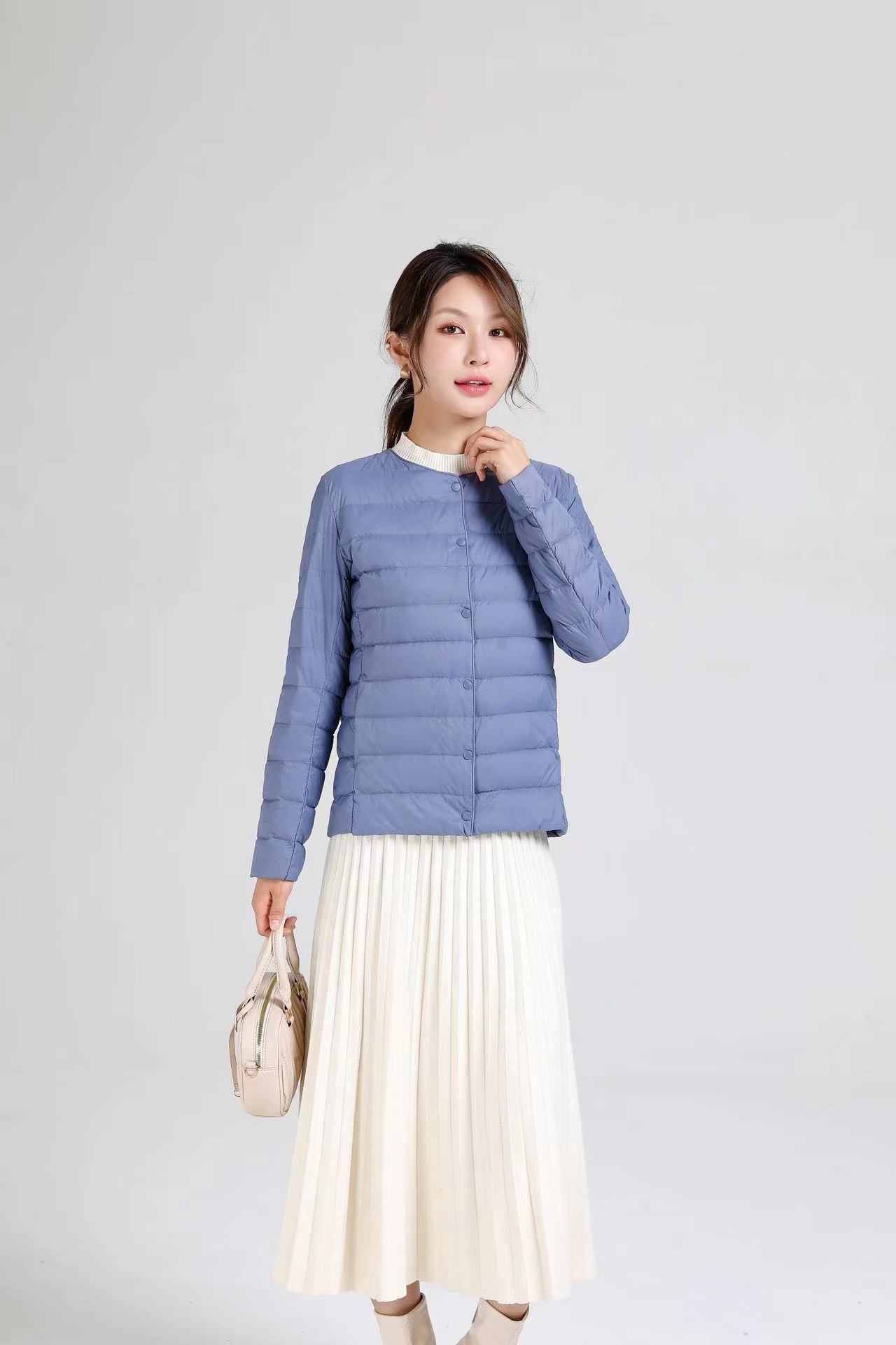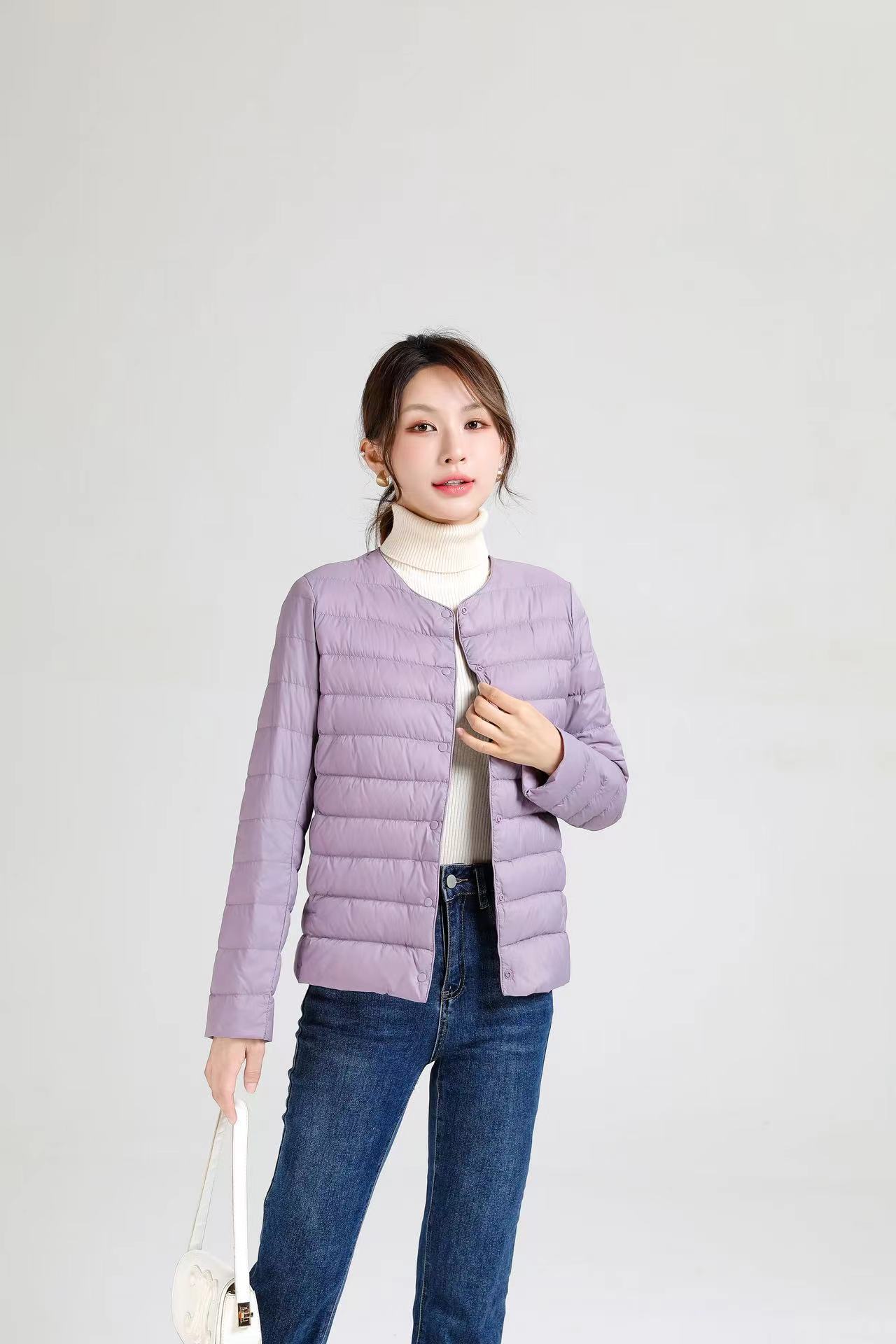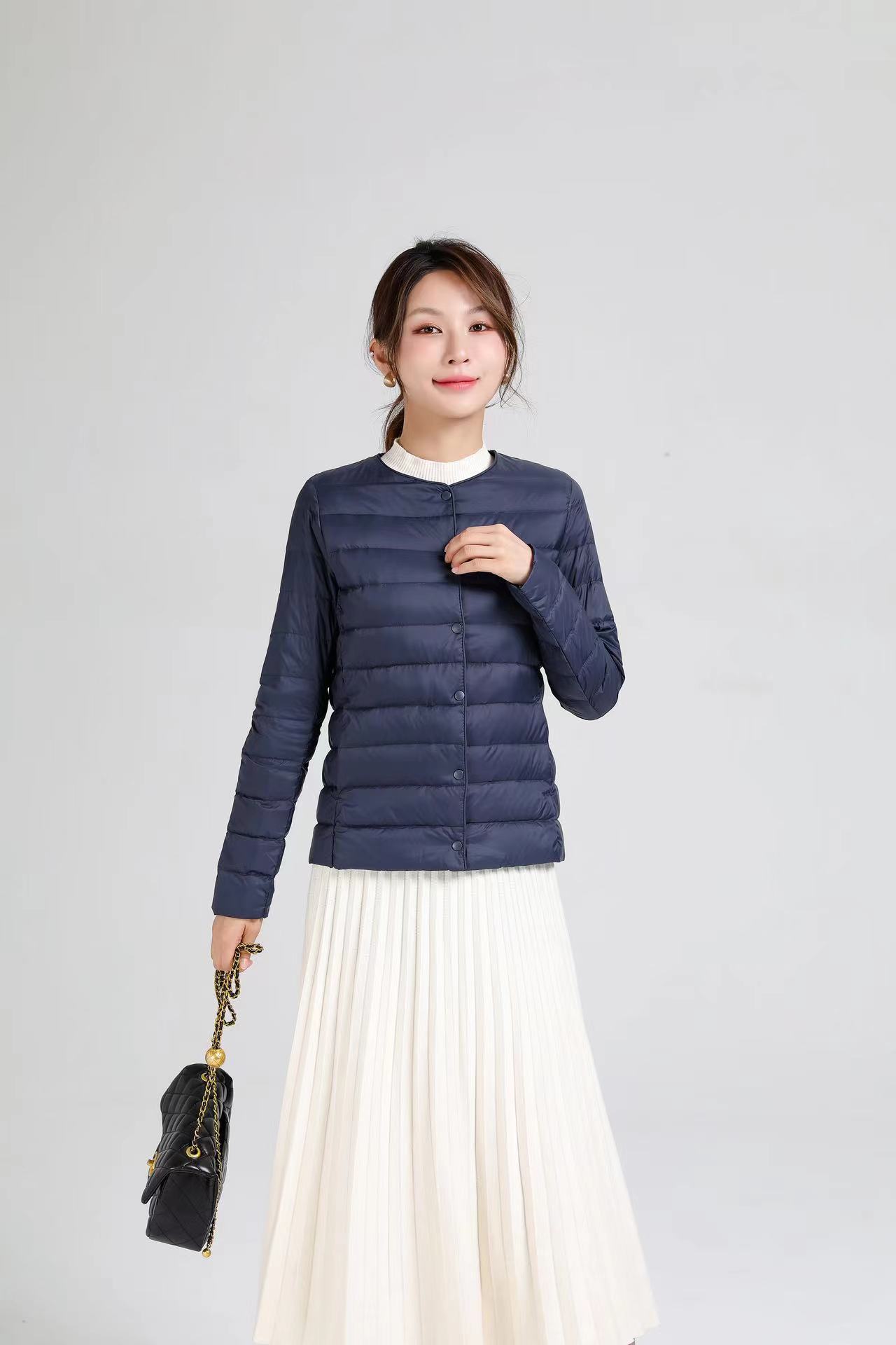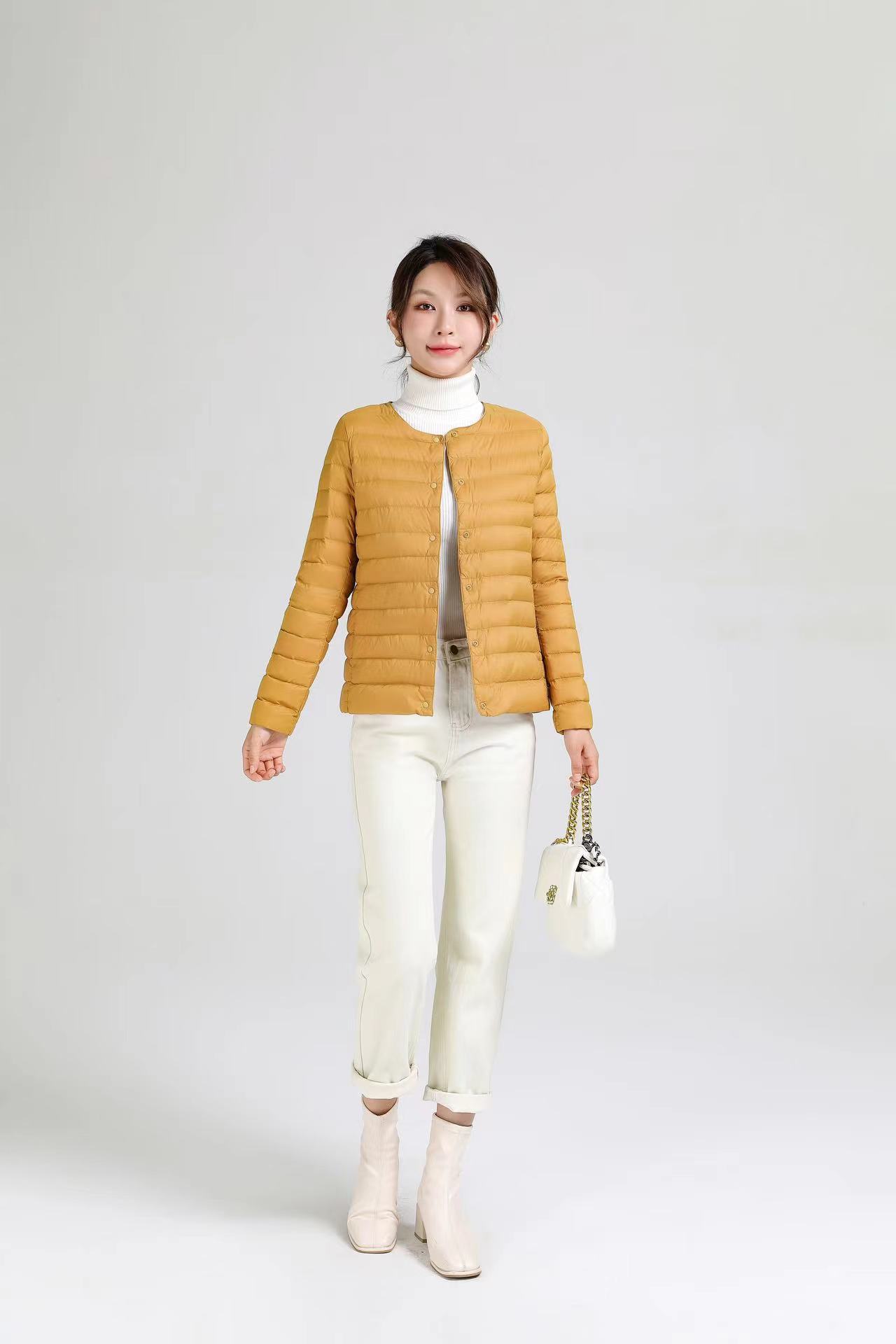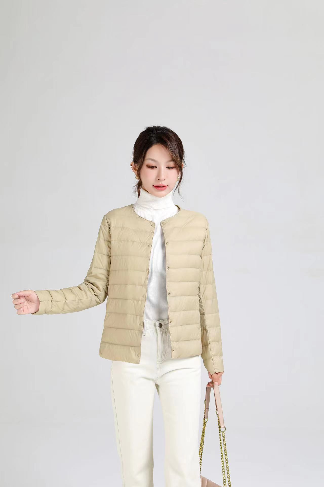 2025 새로운 오프 시즌 경량 라운드 넥 다운 재킷 여성 따뜻한 라이너 짧은 대형 코트 가을, 겨울 여성 칼라리스스토어 가기